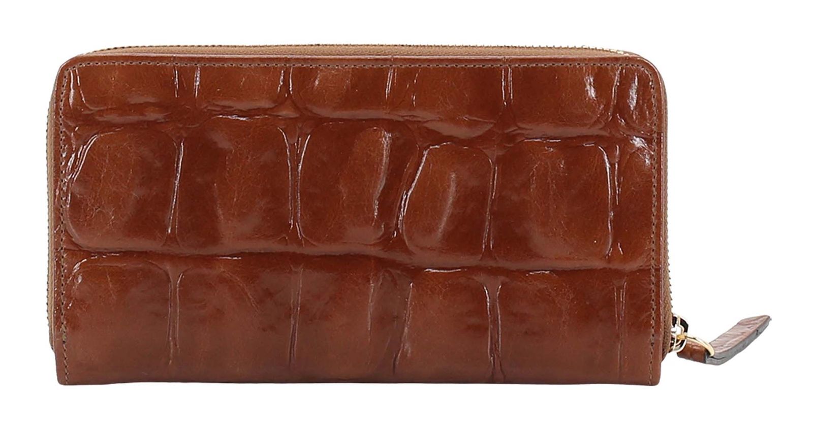 Leather Maxi Cocco Zip Wallet Caramel / Cognac
