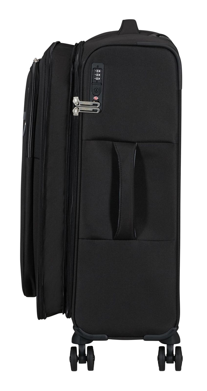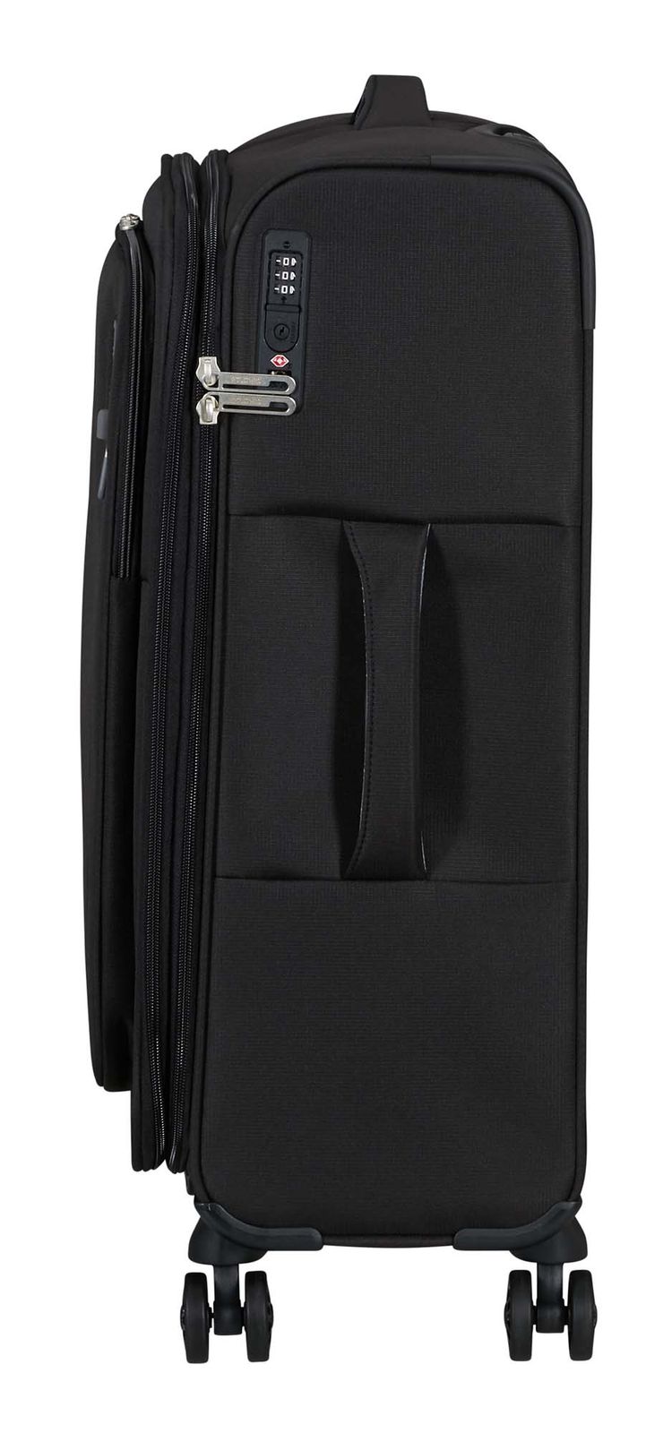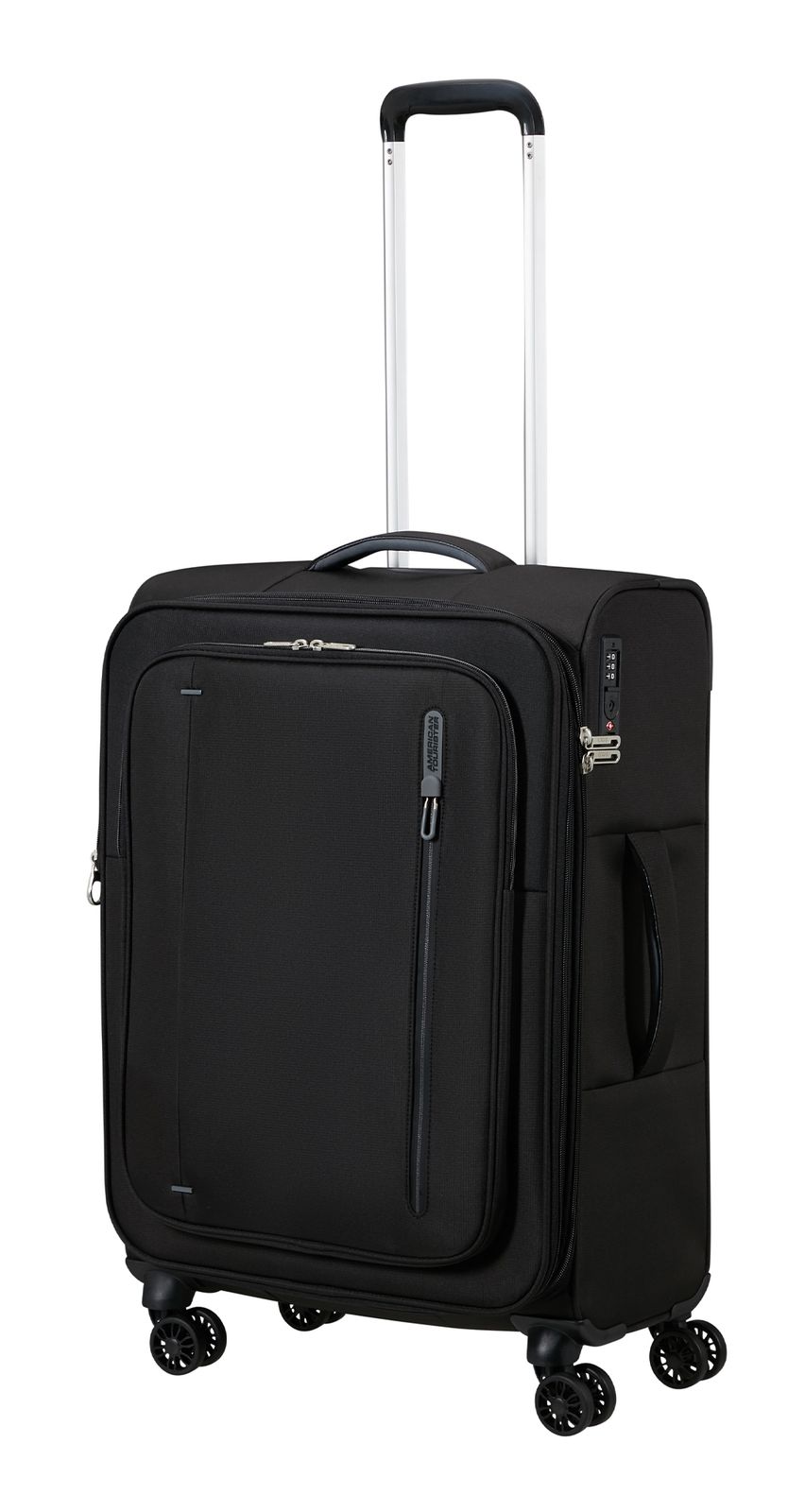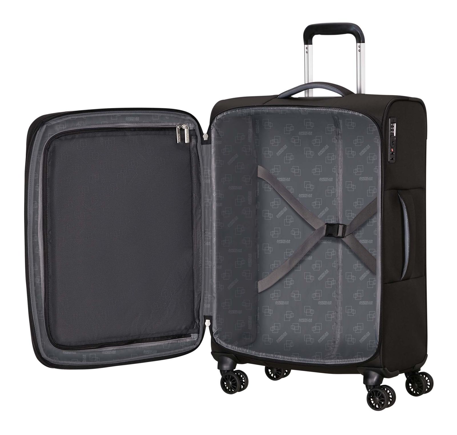 - Das American Tourister Logo ist gut sichtbar eingearbeitet
