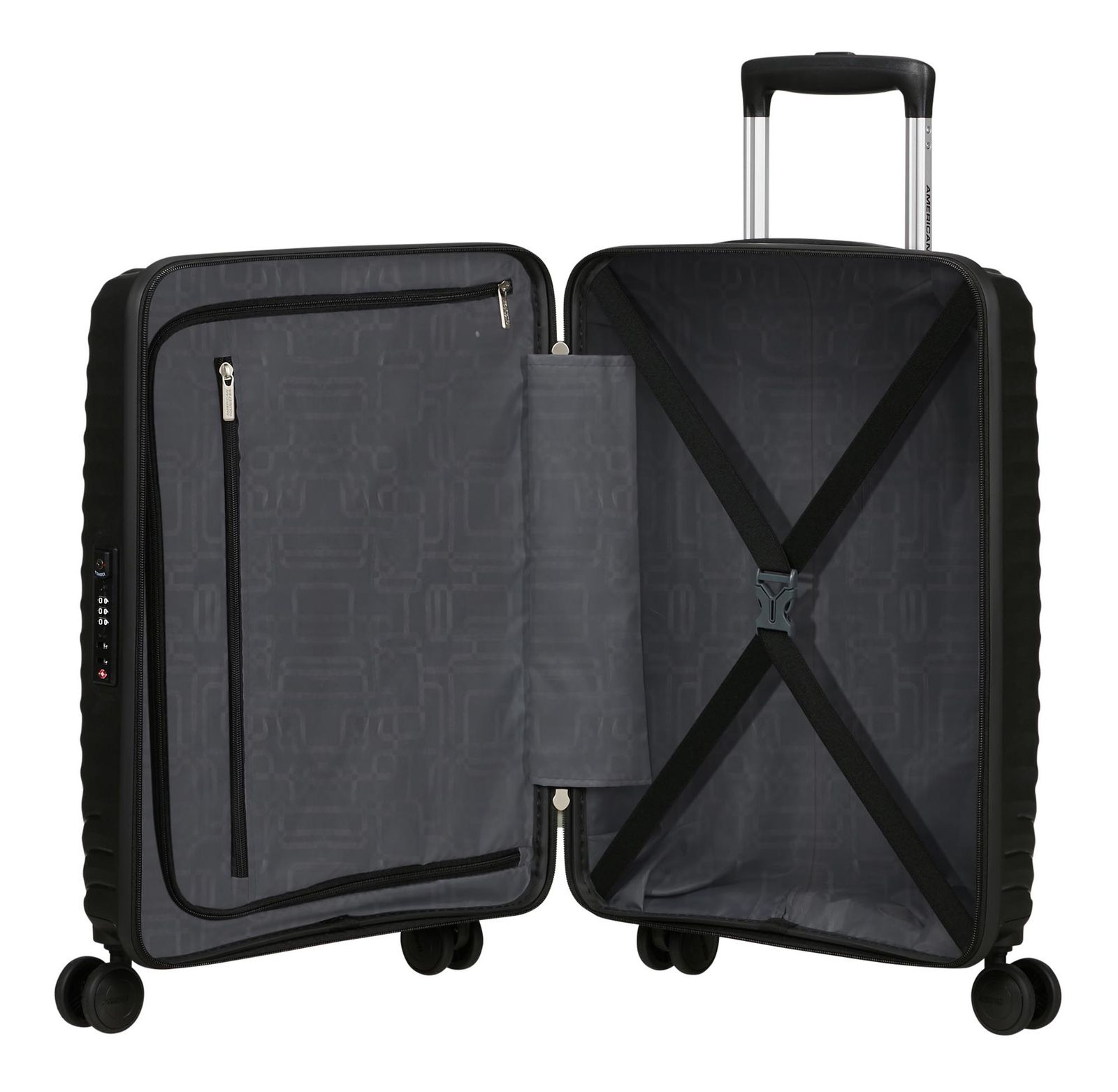 - Das American Tourister Logo ist gut sichtbar eingearbeitet