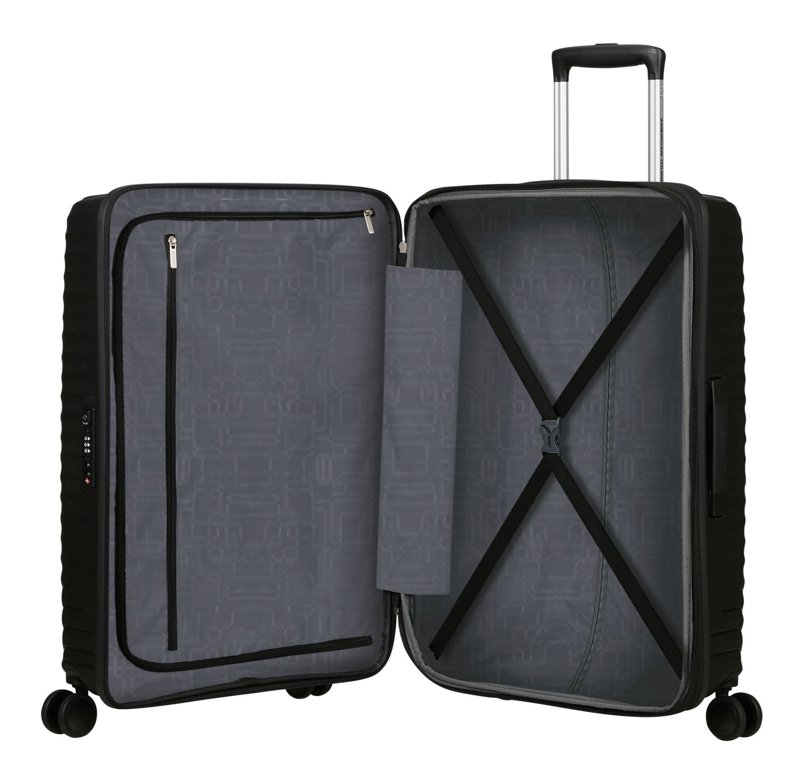 - Das American Tourister Logo ist gut sichtbar eingearbeitet