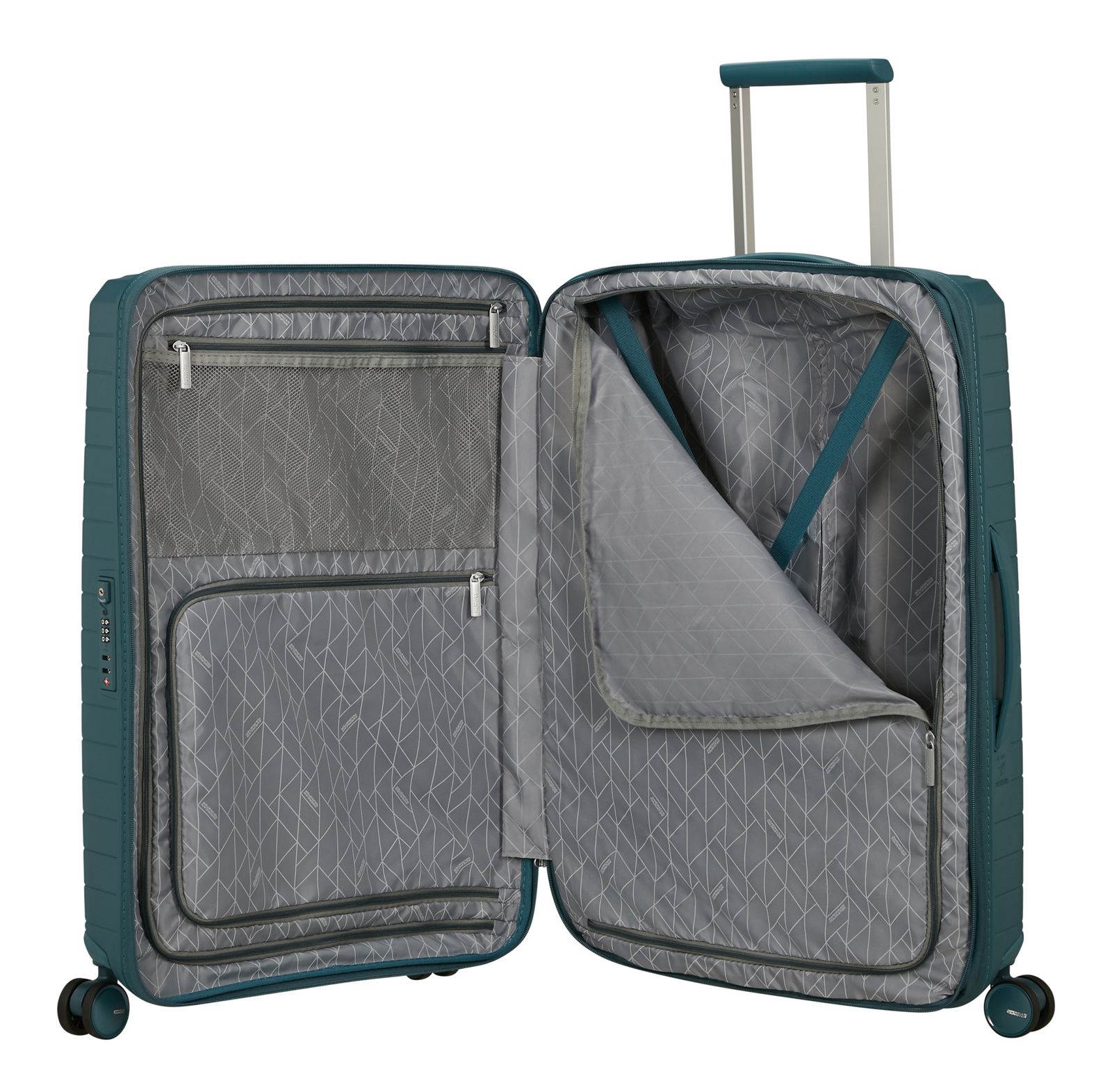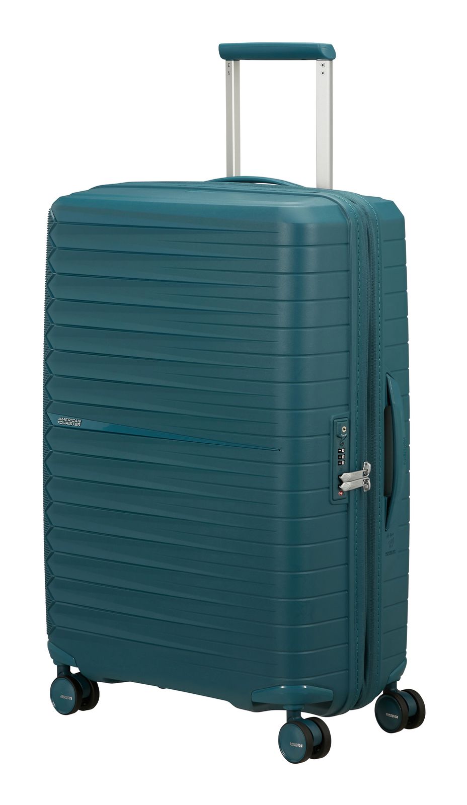 - Das American Tourister Logo ist gut sichtbar eingearbeitet