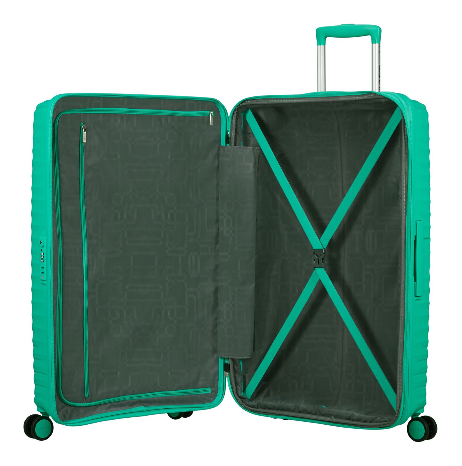 - Das American Tourister Logo ist gut sichtbar eingearbeitet