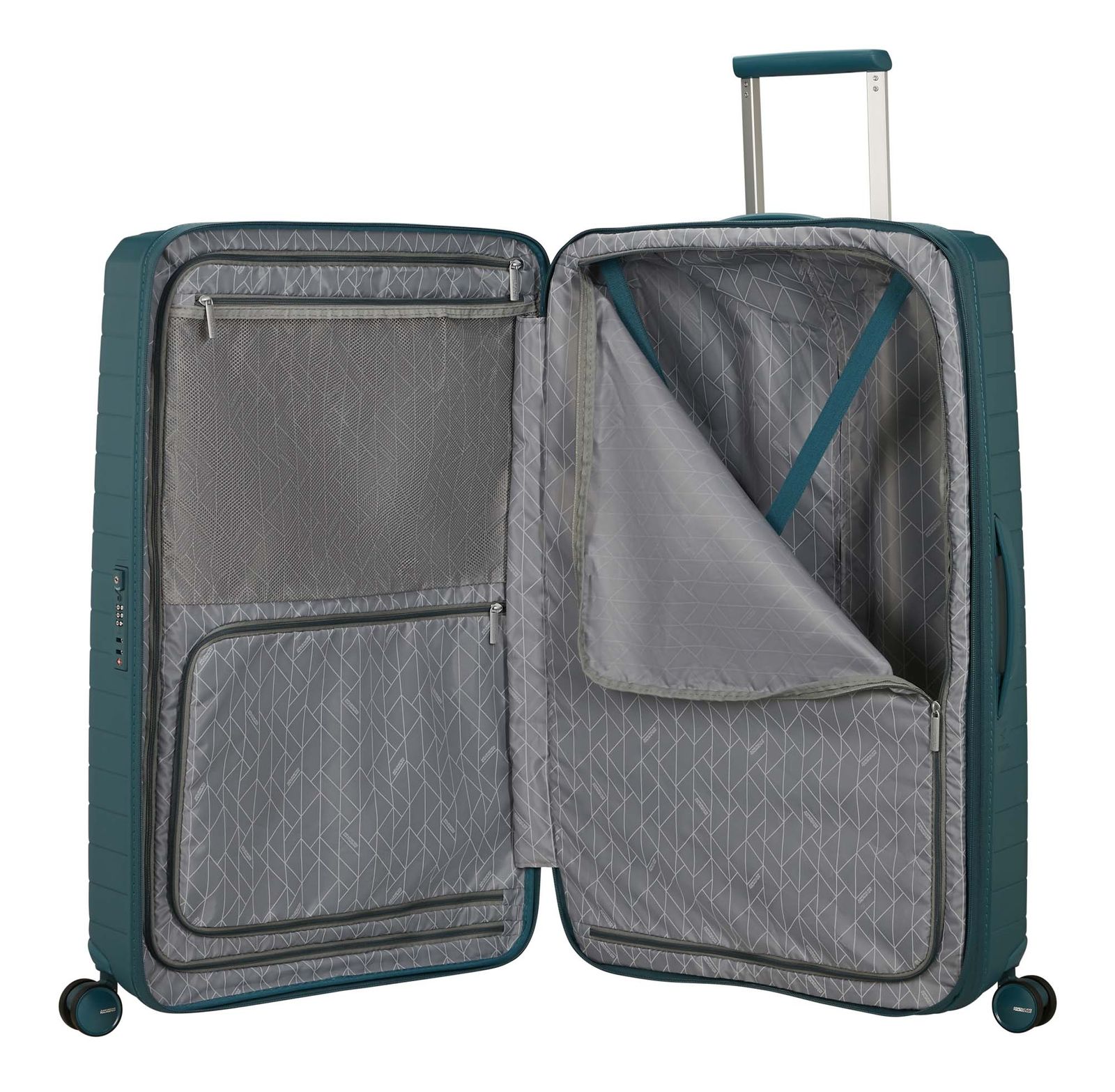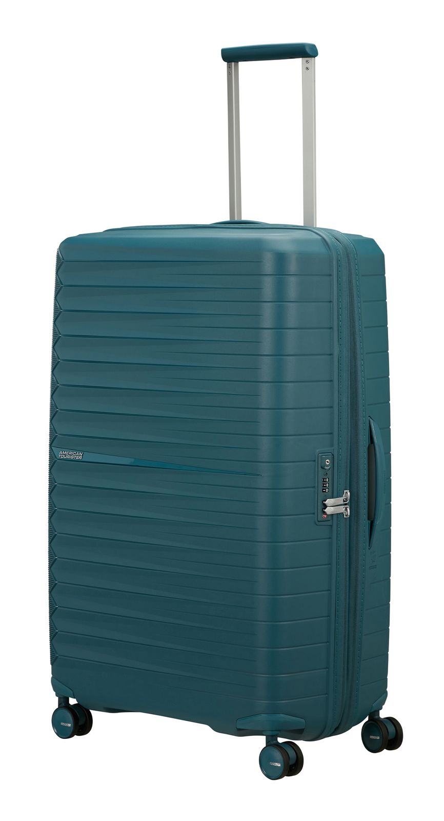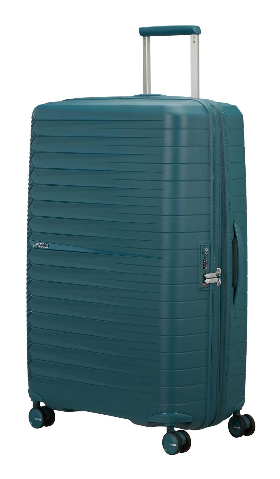 - Das American Tourister Logo ist gut sichtbar eingearbeitet