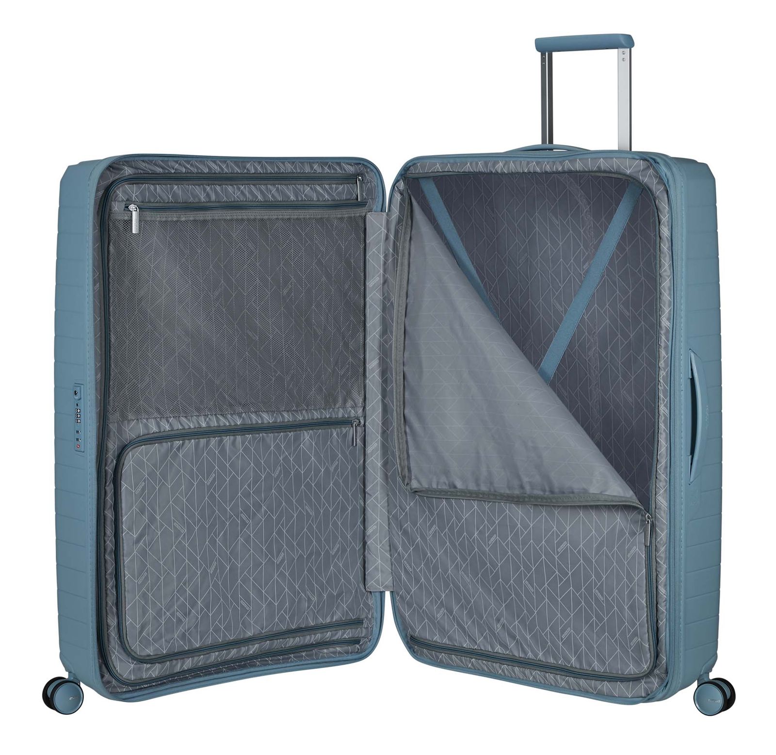 - Das American Tourister Logo ist gut sichtbar eingearbeitet