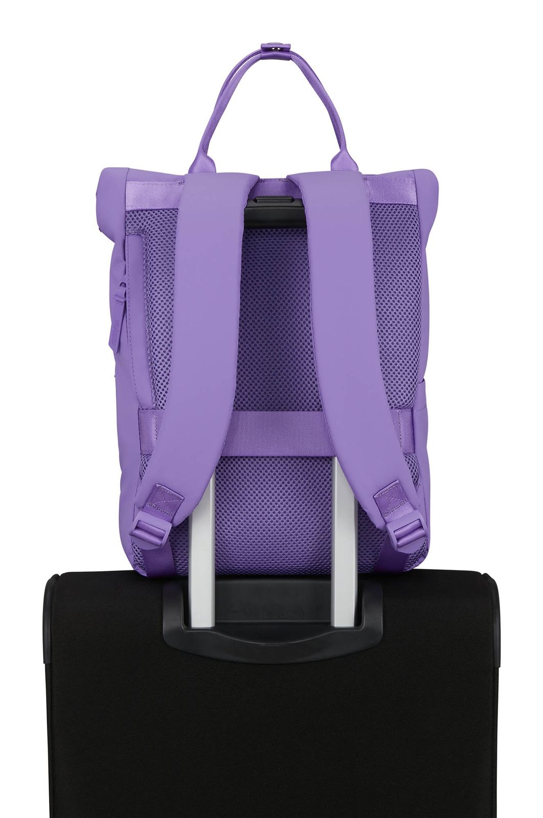 - Auf der Rückseite 1 verdecktes Zipperfach und 1 Trolleyhalterung