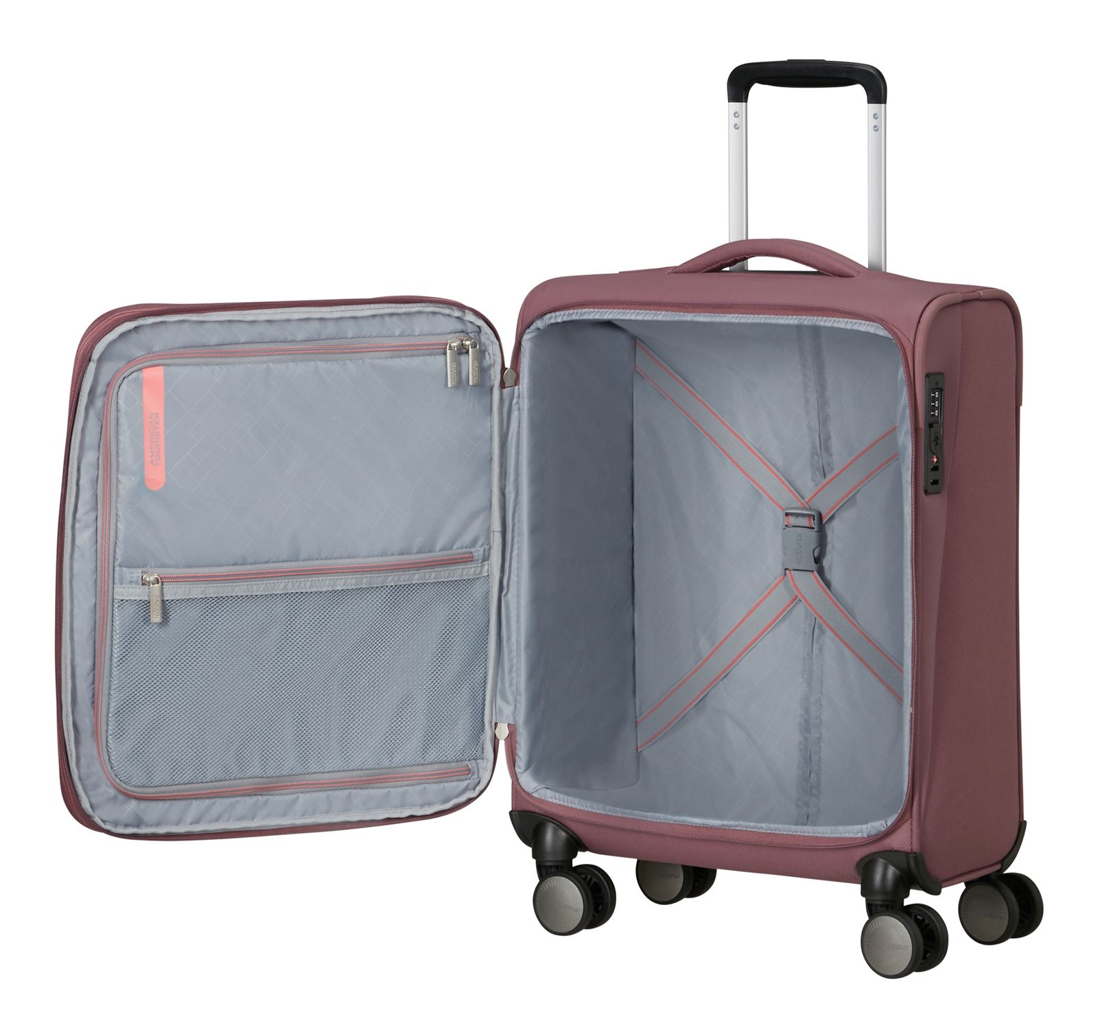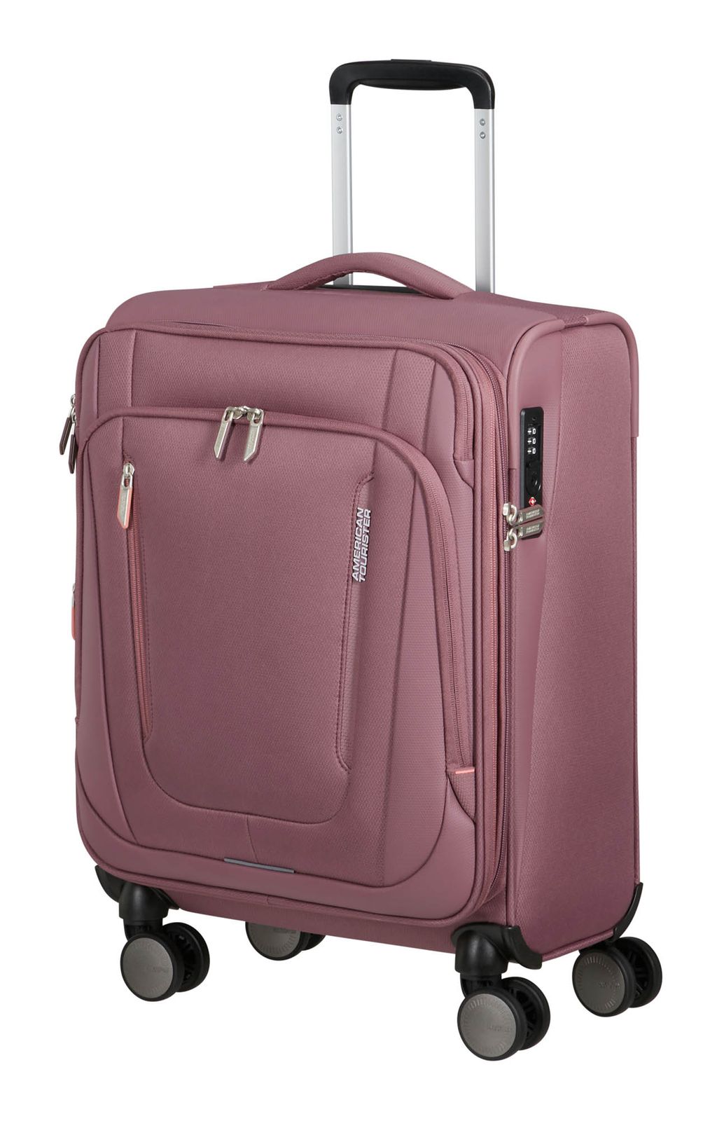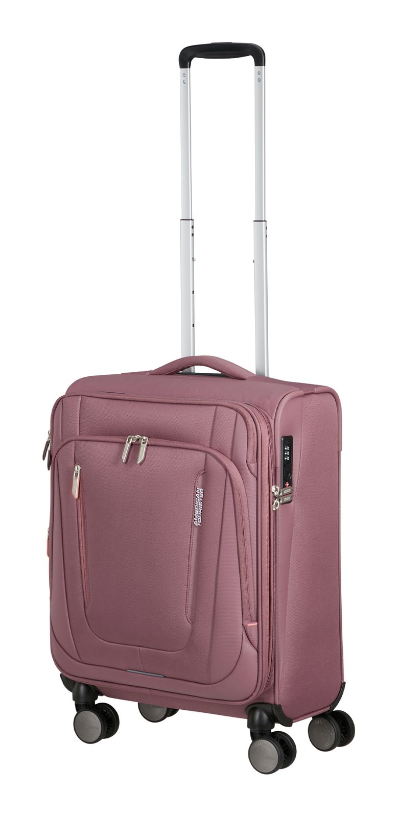 - Das American Tourister Logo ist gut sichtbar eingearbeitet