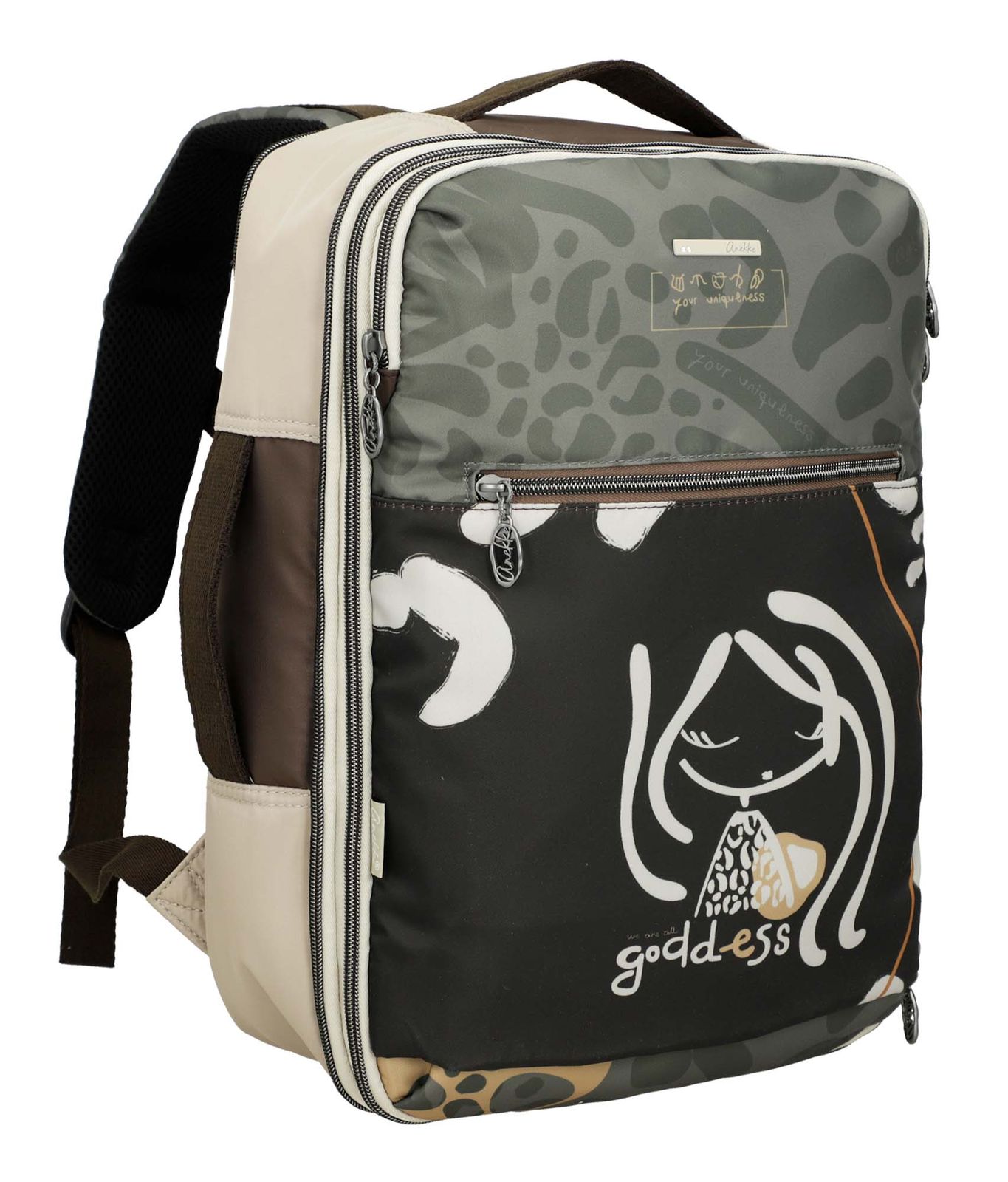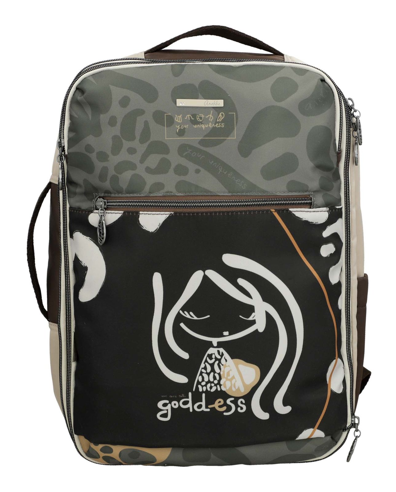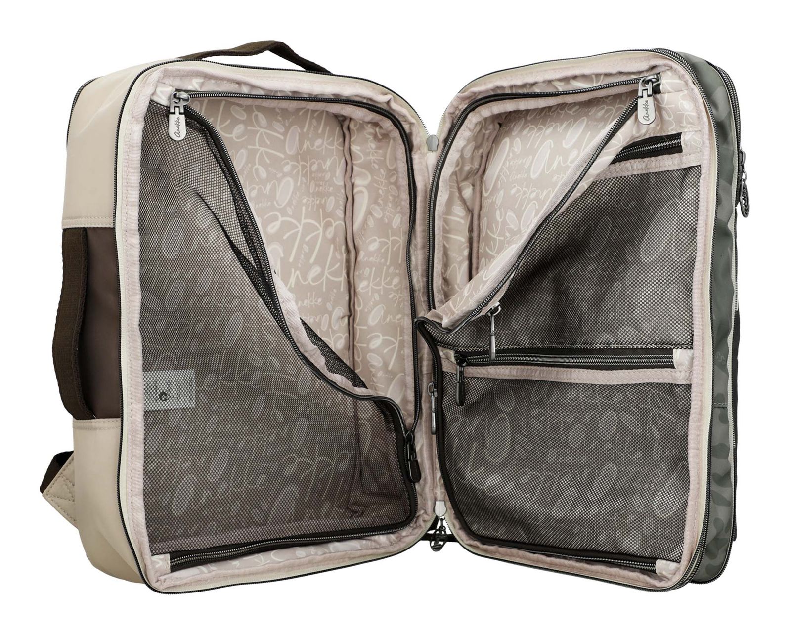 Der Anekke Sophia Gaia Travel Backpack ist mit seinem großzügigen Hauptfach in dem sich Trennwände und Netz-Zipperfächer für sortierte Kleidung befinden und den praktischen Nebenfächern ein mega Arbeits- und Reisebegleiter. Sein tolles Design kombiniert verschiedene gedruckte Elemente mit dem aufgesetzten Anekke-Logoschriftzug. Es handelt sich um einen verstärkten, großformatigen Rucksack, in dem Sie Ihren Laptop, Ihre Dokumente oder alles, was Sie für die Businessreise oder im Flieger benötigen, transportieren können. Der Sophia Gaia Travel Backpack verfügt über einen höhenverstellbaren Brustgurt, einen Schlüsselfinder, eine Trolleyhalterung und Griffe für zusätzlichen Komfort. Sie denken noch darüber nach? Ohne Zweifel ein Basic für jeden Reisenden.