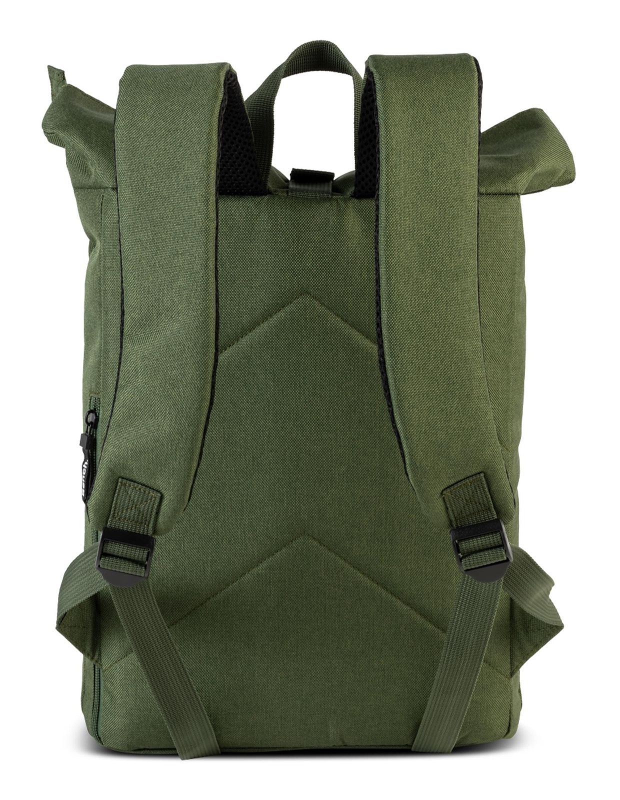- Rucksack wird mit Zipper, Überschlagklappe und Clipverschluss geschlossen