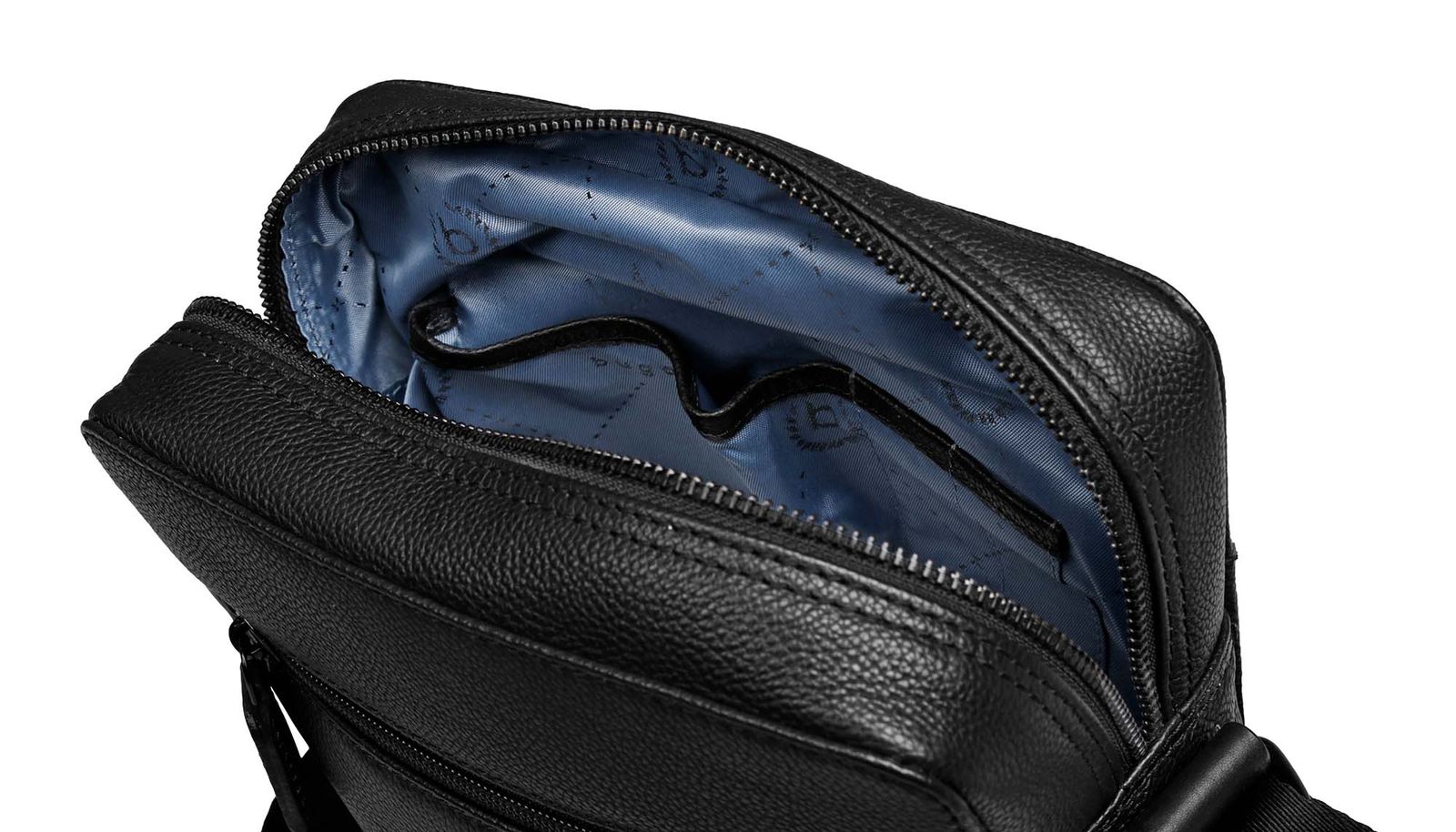 - Umhängetasche wird mit Zipper geschlossen