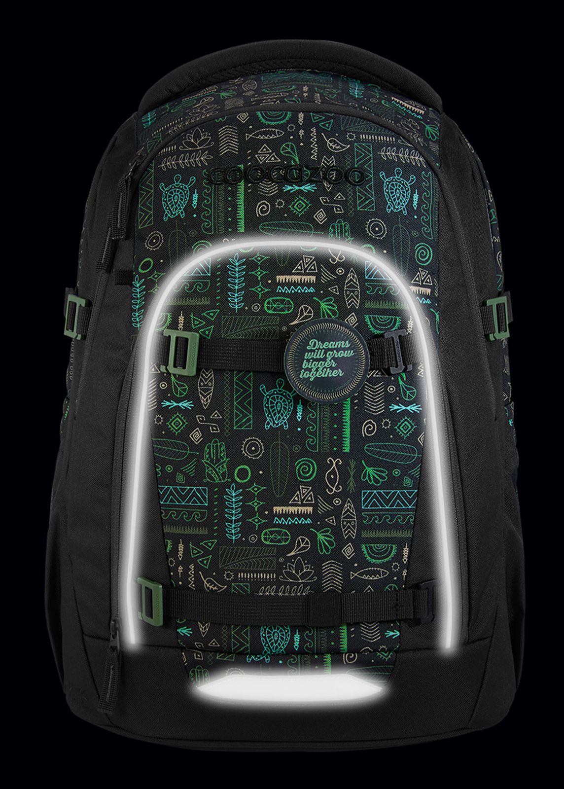 - Lieferumfang: coocazoo Schulrucksack mit Etikett, 1 x Beckenflosse mit Hüftgurt, 4 x Kompressionsriemen, 1 x Brustgurt, 1 x Patch