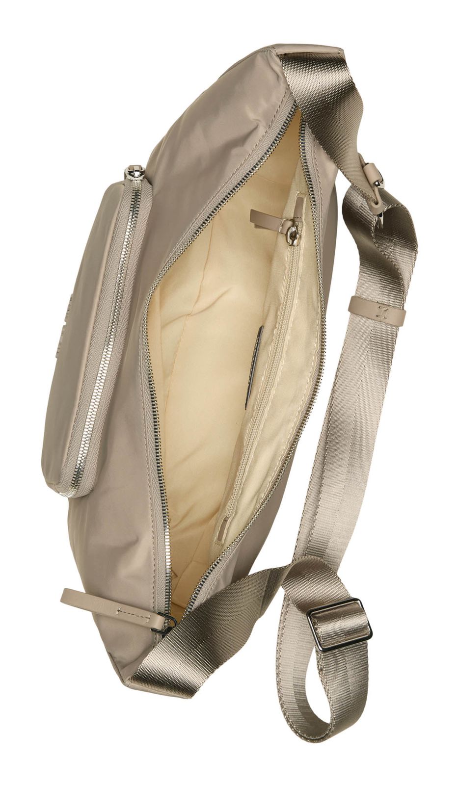 - Umhängetasche wird mit Zipper geschlossen