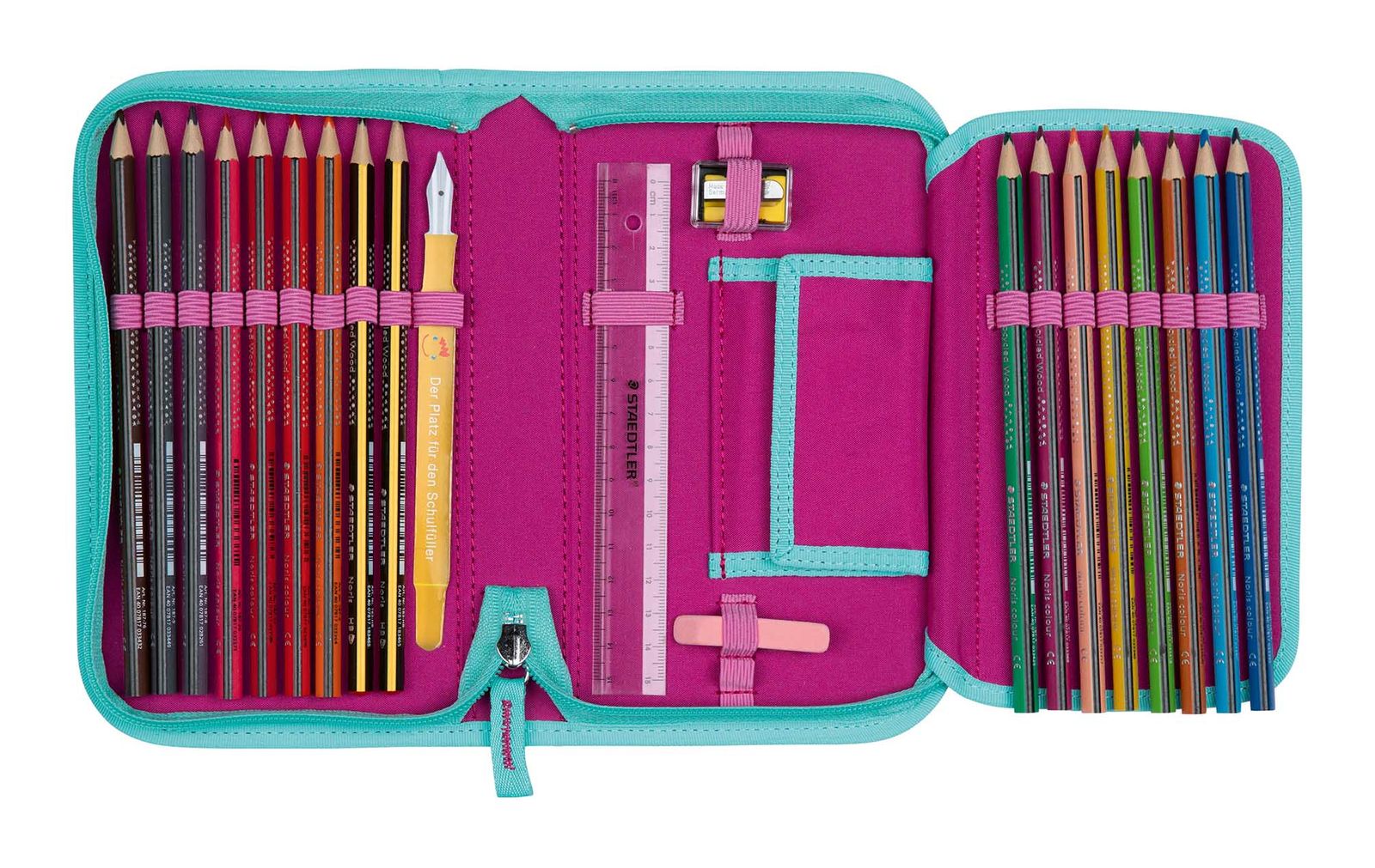 - Lieferumfang: DerDieDas Federmäppchen mit Etikett, 17 x Stifte, 1 x Stundenplan, 1 x Spitzer, 1 x Lineal, 1 x Radiergummi