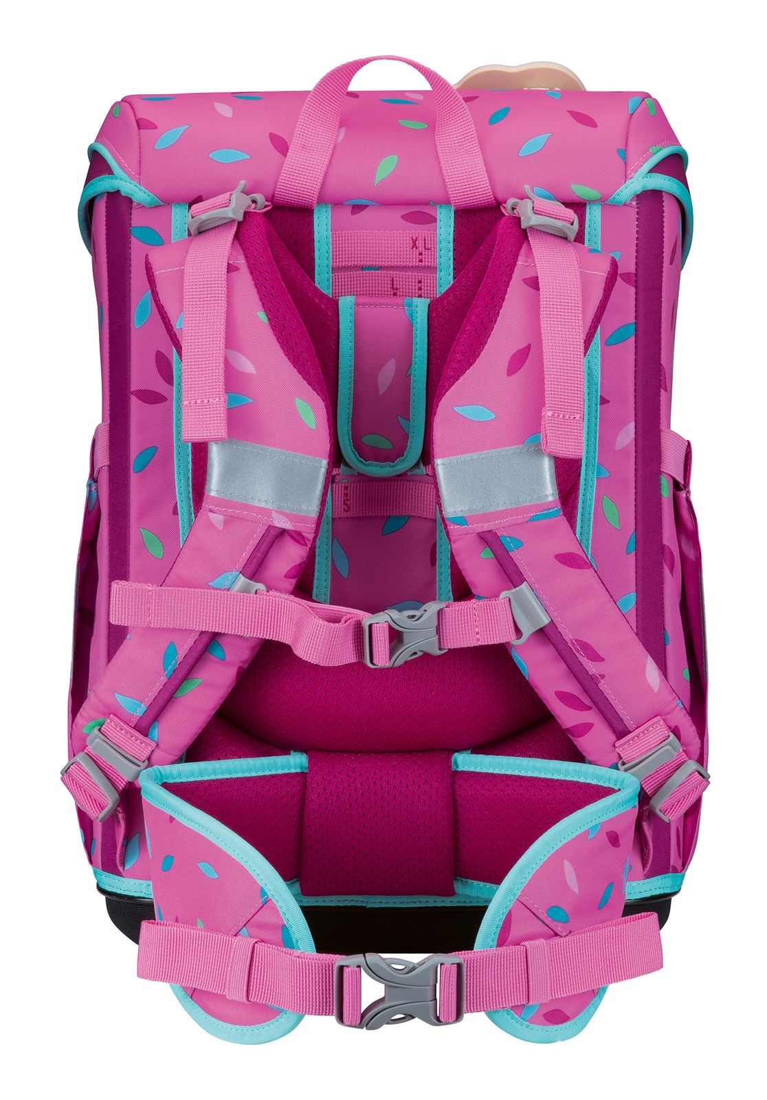 - Schulranzen wird mit Überschlagklappe und Schnappverschluss geschlossen
