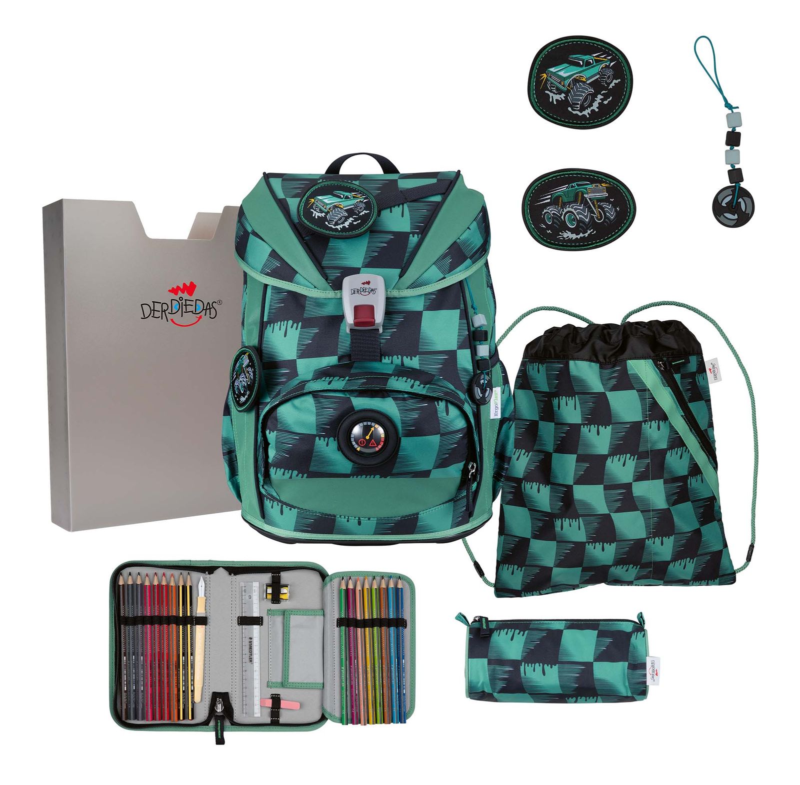 - Lieferumfang: 3 x DerDieDas Schulranzen-Zubehör mit Etikett, 1 x Anhänger
