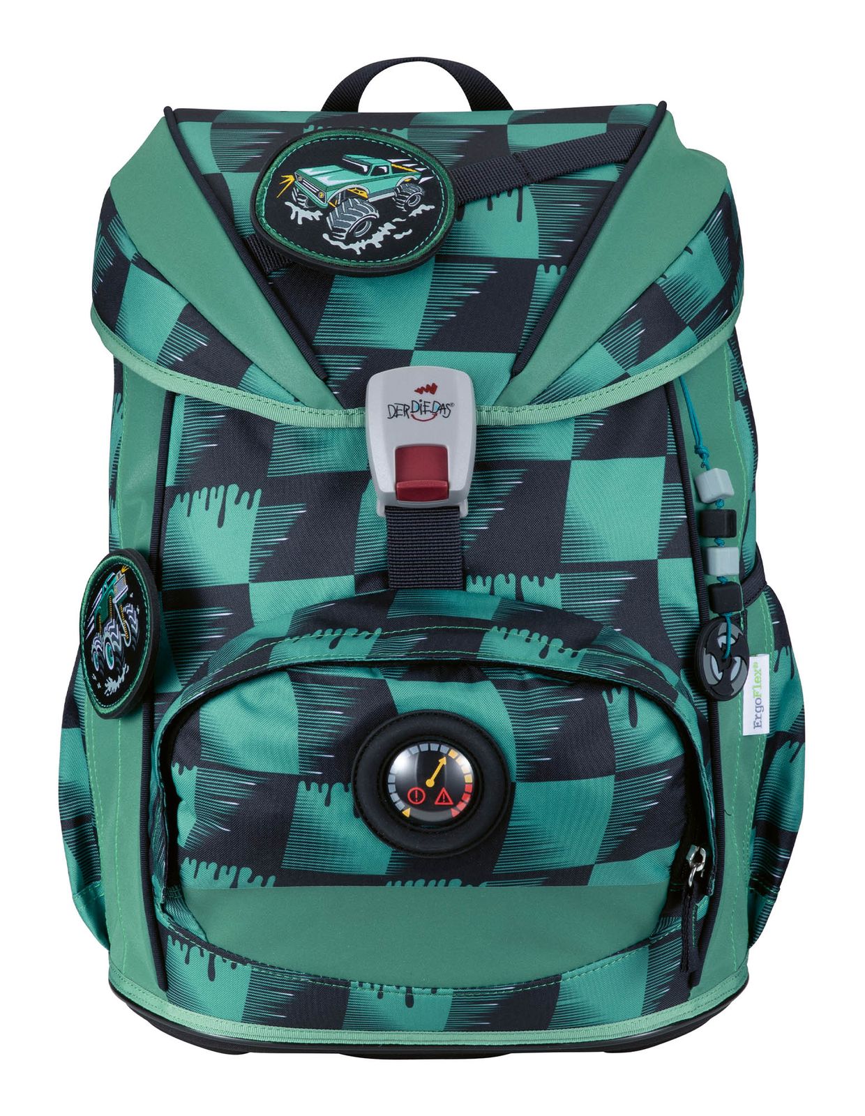 - Lieferumfang: DerDieDas Schulranzen mit Etikett, 1 x Namensschild, 2 x Polster, 1 x Schlüsselring, 1 x Beckenflosse mit Hüftgurt, 1 x Bodenplatte, 1 x Sichtfach, 1 x Anhänger