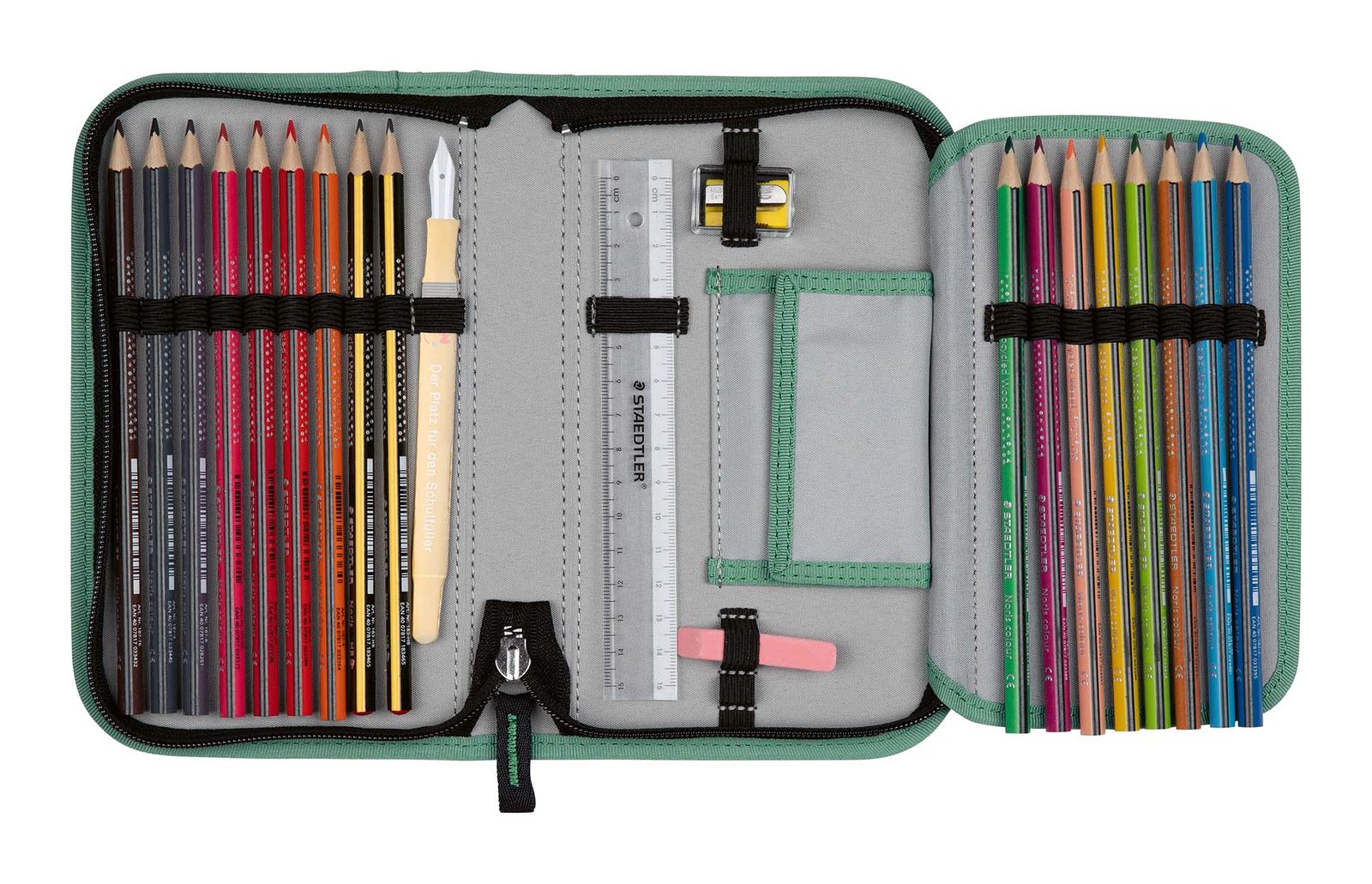 - Lieferumfang: DerDieDas Federmäppchen mit Etikett, 15 x Stifte, 1 x Stundenplan, 1 x Spitzer, 1 x Lineal, 1 x Radiergummi, 2 x Bleistift
