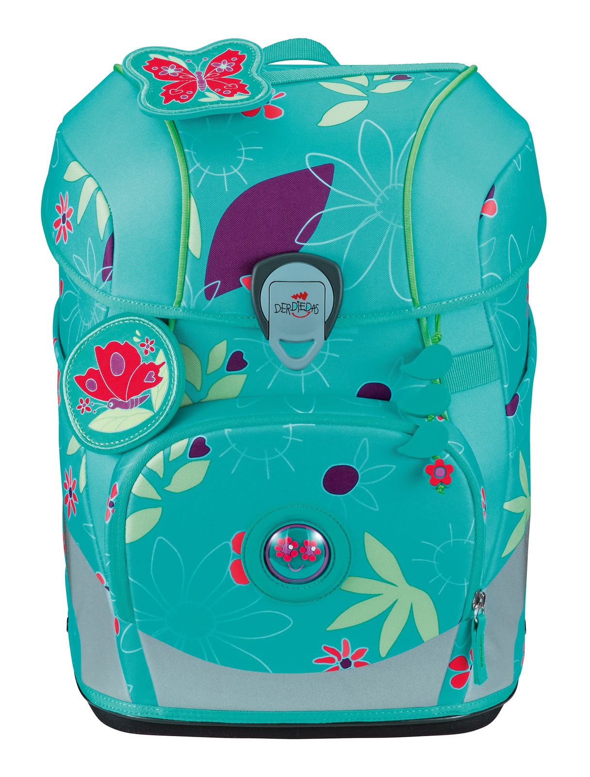 - Lieferumfang: DerDieDas Schulranzen mit Etikett, 1 x Namensschild, 1 x Schlüsselring, 1 x Sichtfach, 1 x Beckenflosse mit Hüftgurt, 1 x Bodenplatte, 2 x Polster