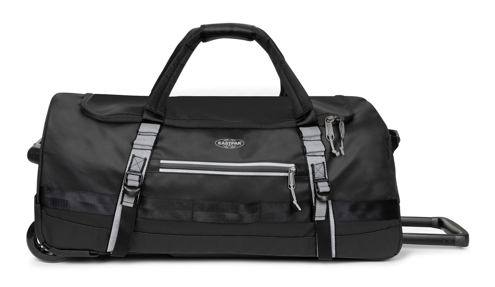 Dieser EASTPAK Reisebegleiter ist ein Muss auf der nächsten Reise. Ein Kompressionsriemen im Inneren hält Ihre Kleidung rutschfest an Ort und Stelle. Die tolle Verarbeitung, die beiden Rollen und das Trolleysystem bringen Ihnen auf der nächsten Reise ein Lächeln ins Gesicht. Die beiden gepolsterten Henkel lassen sich auch als Rucksackgurte nutzen. Der EASTPAK Duffel Pack Wheel Trolley M aus wasserabweisendem Material mit reflektierenden Elementen hat unsere Herzen überrollt und wir wollen ihn auf der nächsten Reise sicherlich nicht missen!