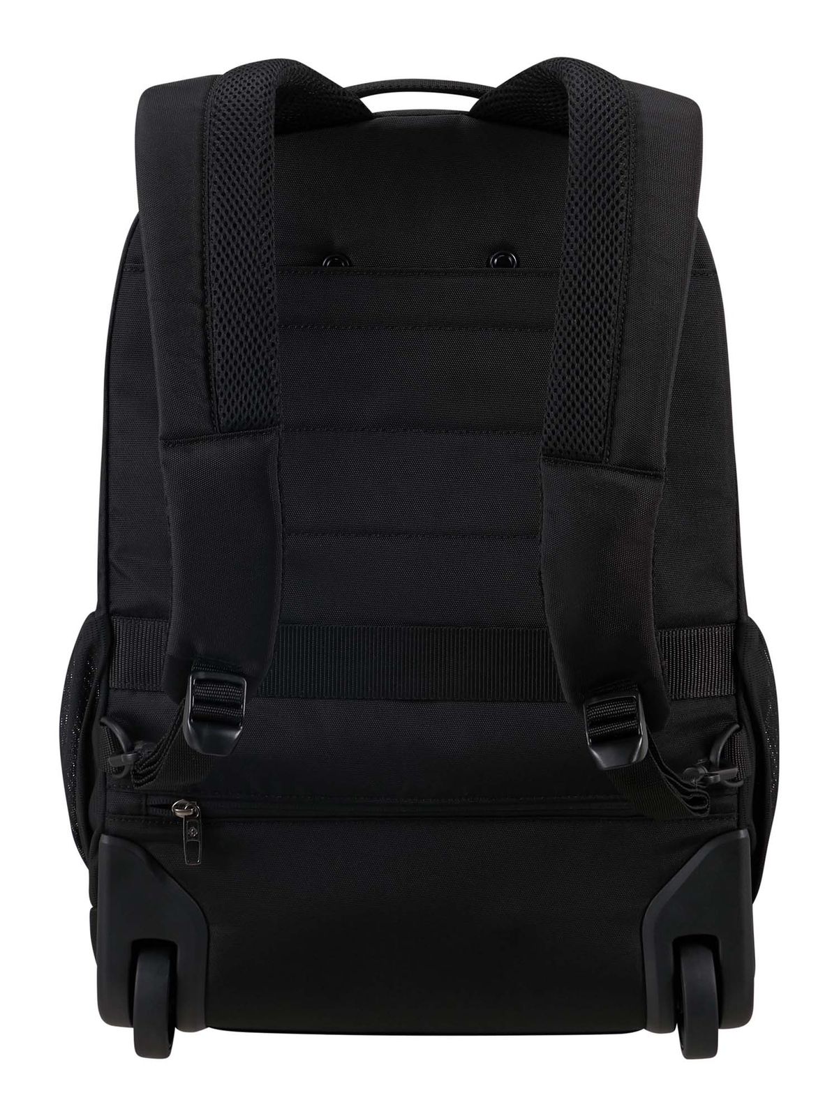 - Also on the back 1 zipped compartment, in which there is 1 pull-out cover with push-button for rollers