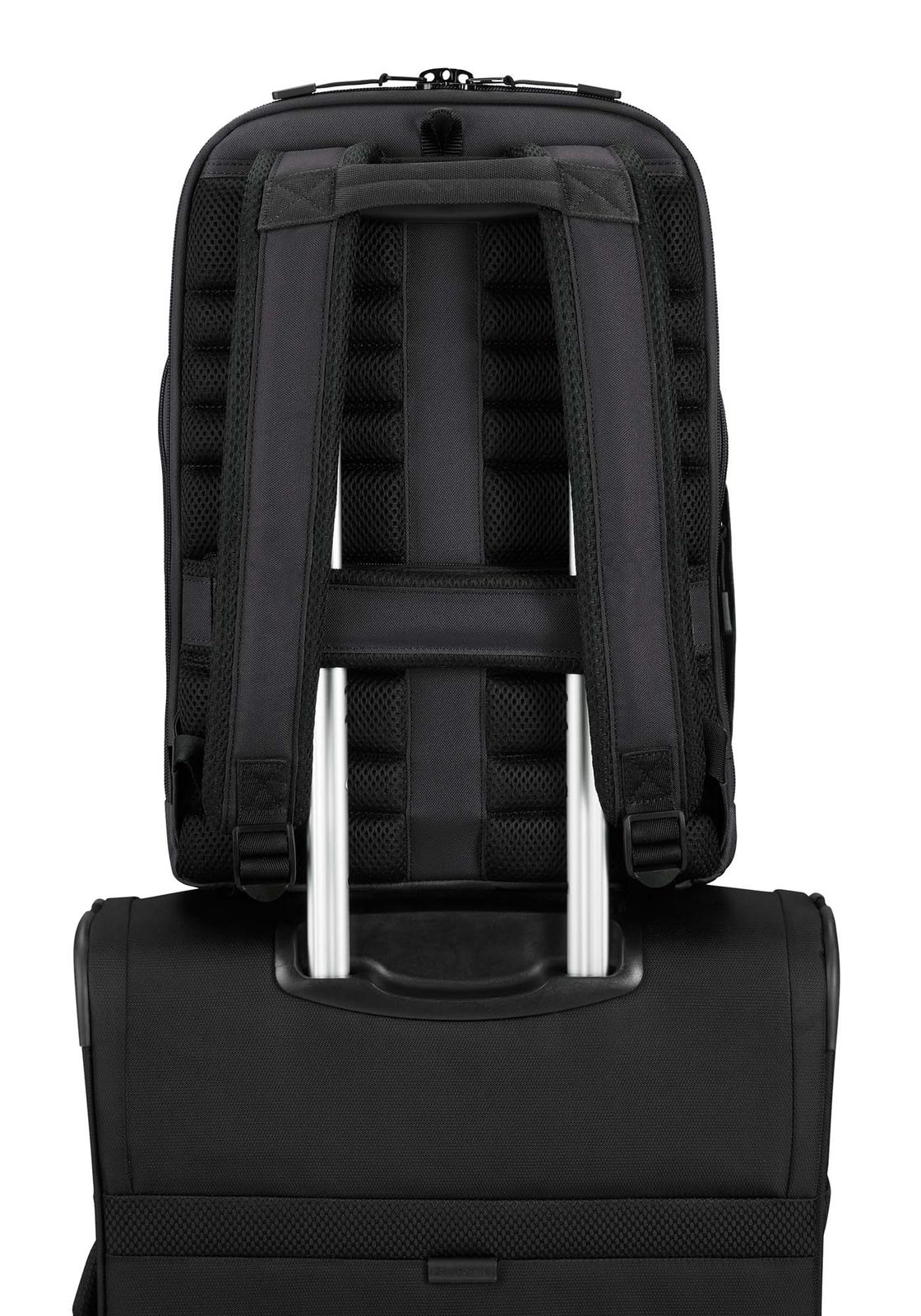 - On the back, 1 trolley holder and 1 zipped compartment