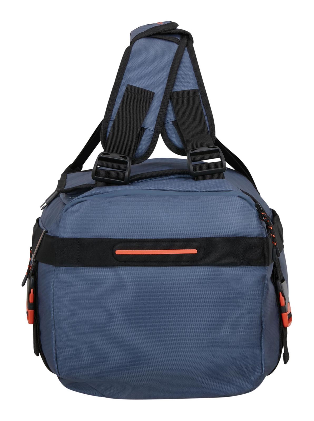 - On the front, 1 zipped compartment with water-repellent zipper and 2 compression straps with clip closure