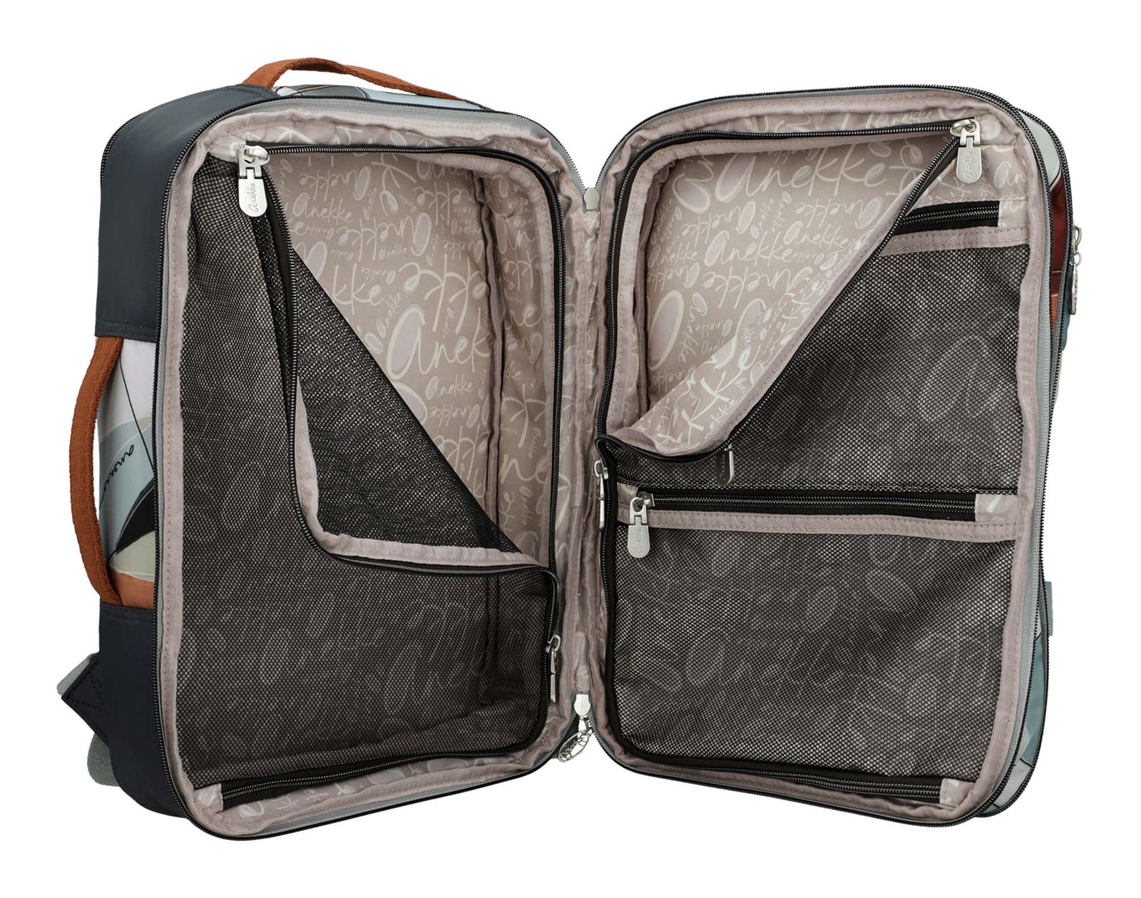 The Anekke Sophia Exp. Travel Backpack is a mega travel companion with its expandable volume and practical compartments. Its original design combines various printed elements with the metal Anekke logo lettering. It is a lightweight, large-format backpack in which you can carry your laptop, documents or anything you need for a business trip or on a plane. The Sophia Exp. Travel Backpack features multiple compartments, a key finder, height-adjustable chest strap , and handles for added comfort. Still thinking about it? Without a doubt, a basic for every traveler.