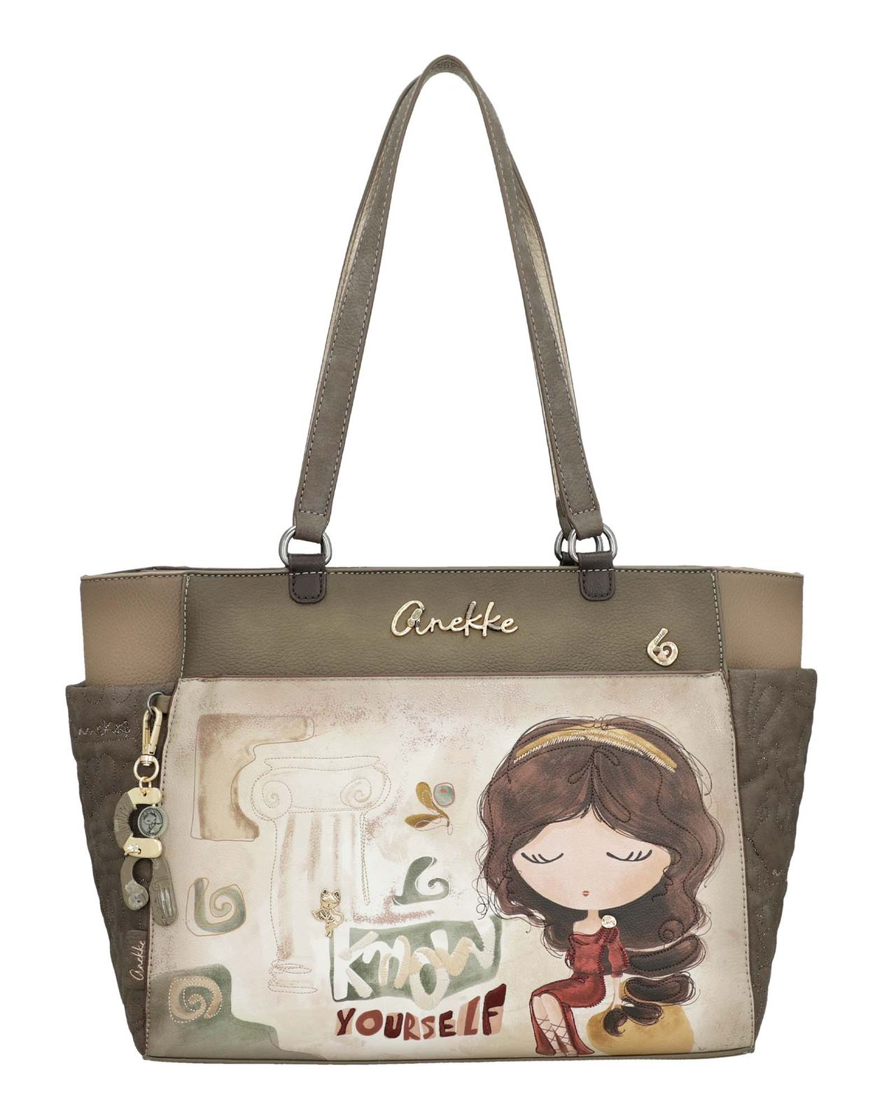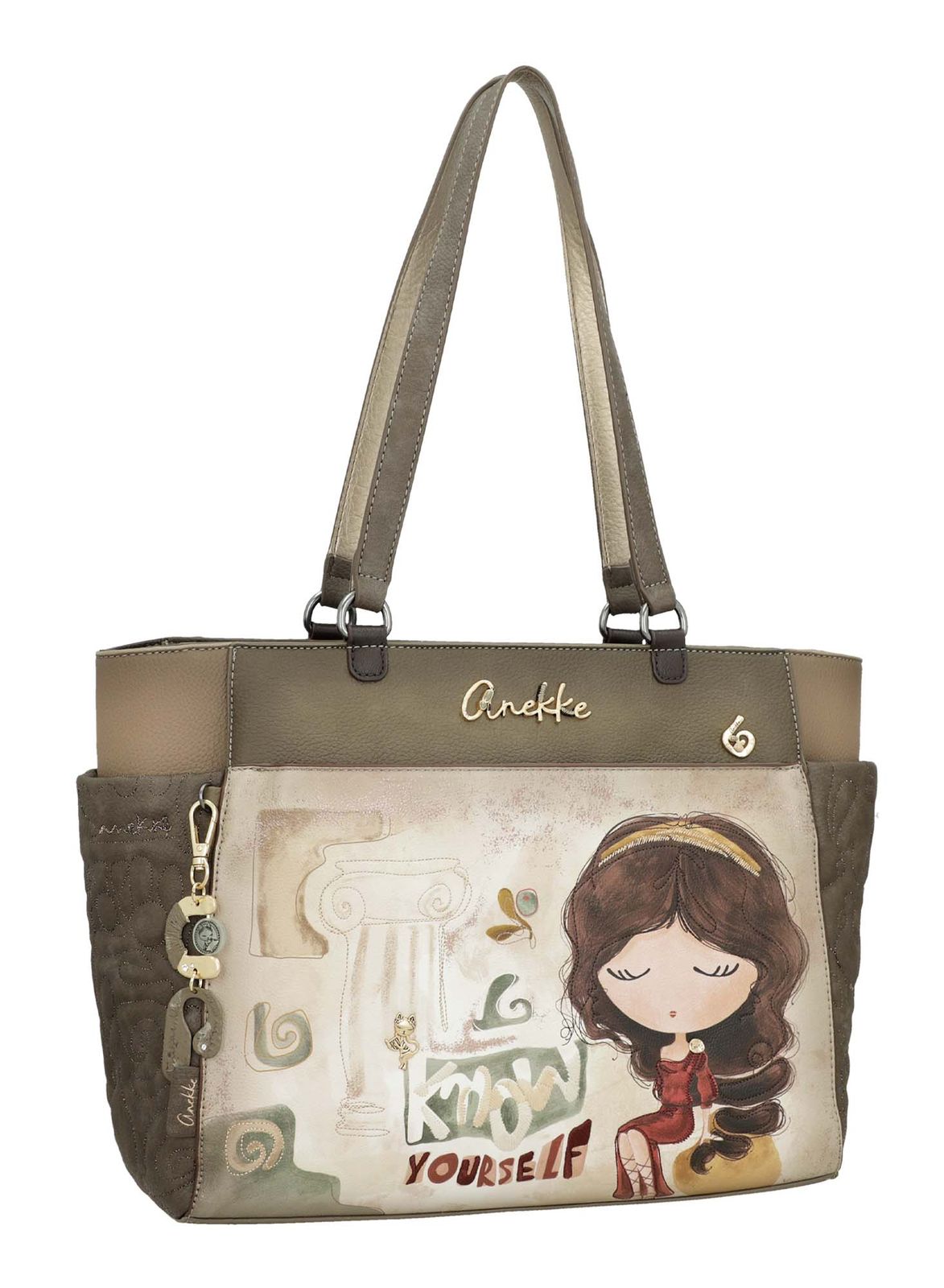 This Anekke Muse Tote Bag has been put together with a lot of love and this is reflected in the impressive patterns and the irresistible motif that transport the wearer to classical Greece - between temples, columns and sculptures. Stylishly combined with many looks, the bag gives every outfit a great effect. Not only the special applications, but also the usefulness of this Tote Bag are convincing through and through. Embroidery, the striking logo lettering and also the logo charm typical of Anekke make the bag unique. This Anekke bag is a true work of art.