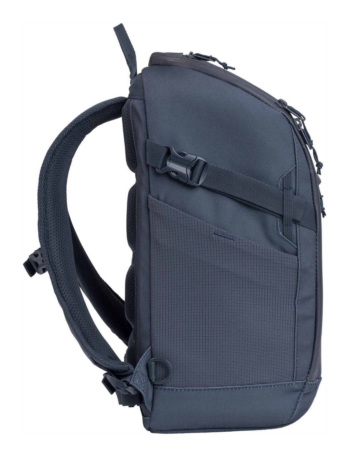 - On the right and left side 1 elastic mesh compartment for drinking bottles or umbrellas and 1 infinitely adjustable compression straps with clip closure