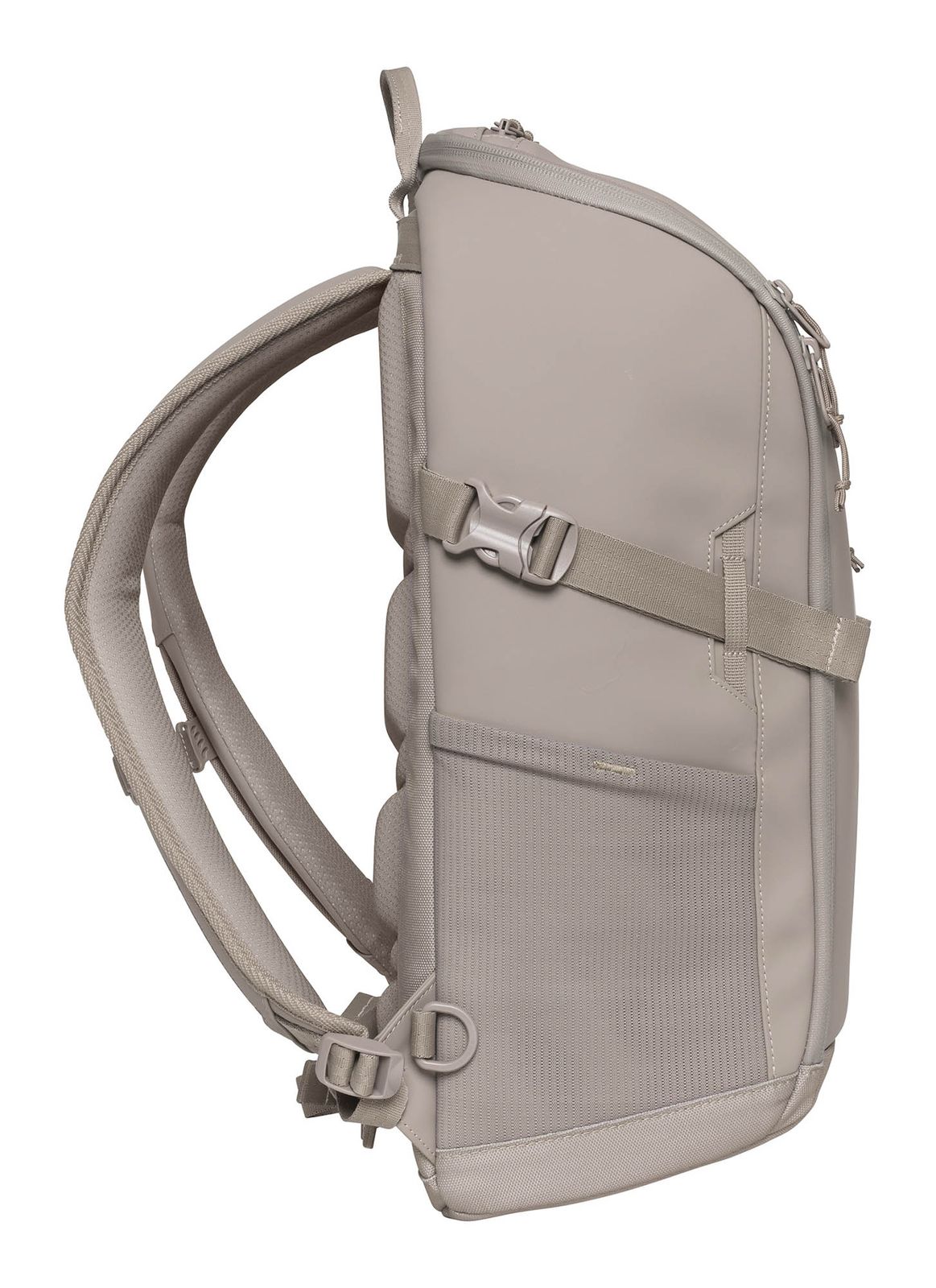 - On the right and left side 1 elastic mesh compartment for drinking bottles or umbrellas and 1 compression straps with clip closure