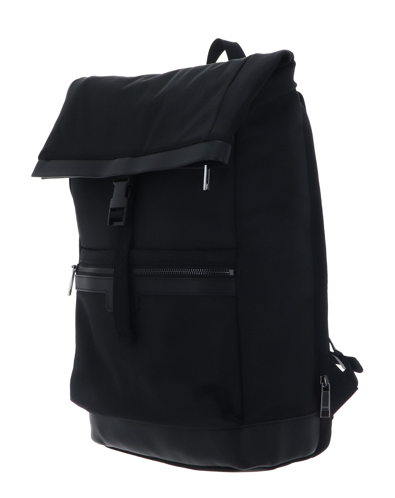 - backpack is closed with zipper, roll closure and infinitely adjustable clip closure