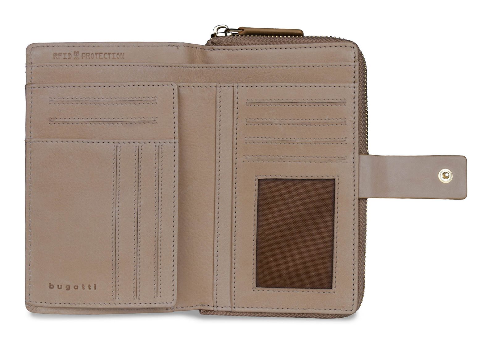 - 1 zipped compartment for coins / small change, divided into 2 slide-in compartments