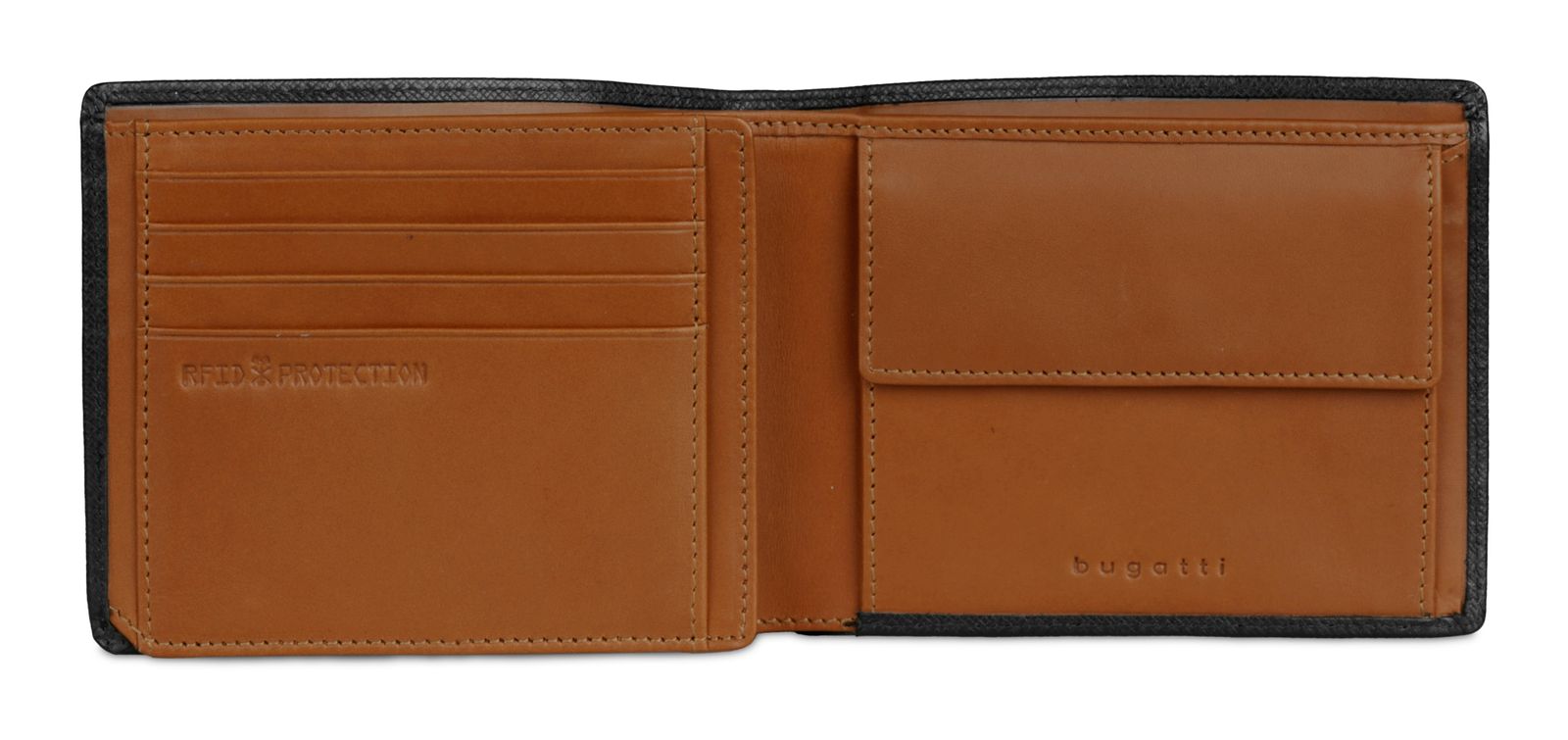 The cowhide leather bugatti Roccia Wallet with Flap is comfortable to hold and inspires with its high quality and optimal workmanship. You don't always want to carry these oversized wallets with you and still have all your finances and IDs with you? Then this purse with RFID protection from bugatti is just the right choice for you!