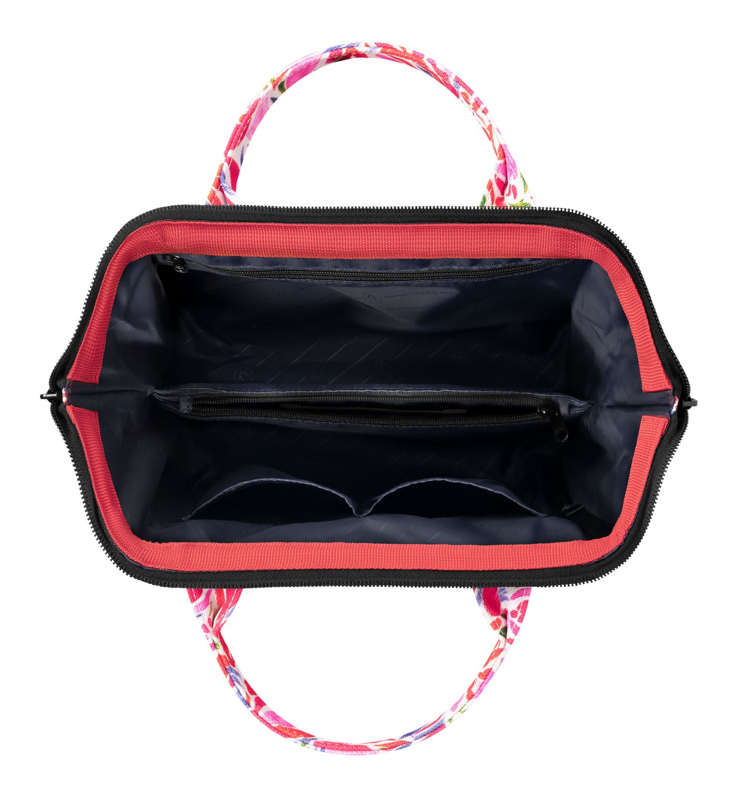 - The main compartment is divided into 2 compartments by 1 zipped compartment