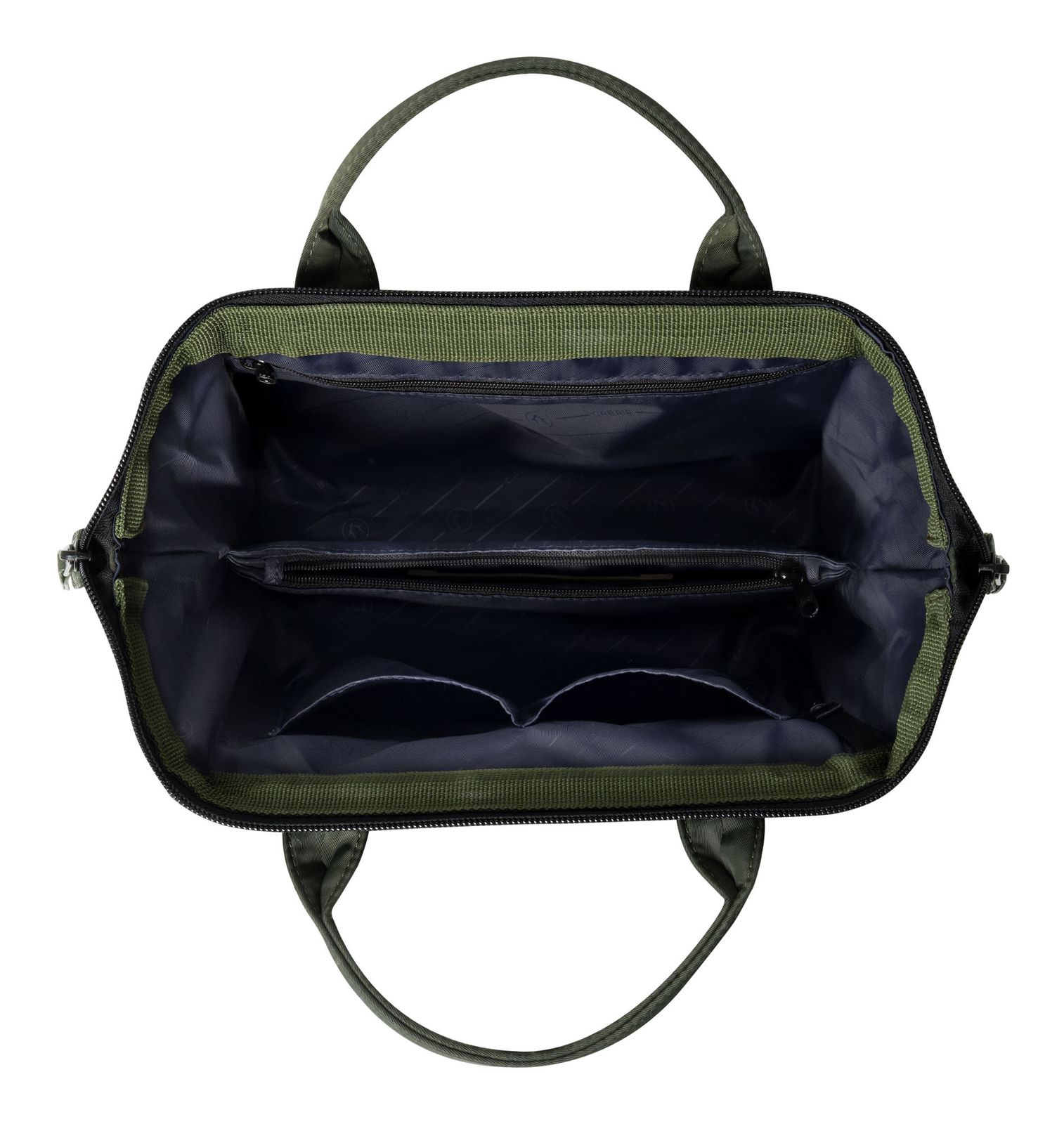 - The main compartment is divided into 2 compartments by 1 zipped compartment