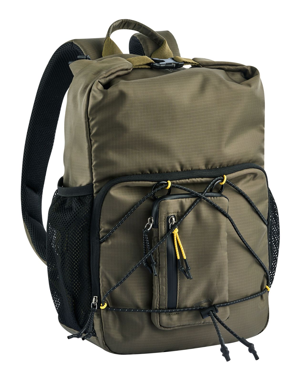 - On the front, 1 patch zipped compartment, 4 elastic fastening loops and 1 drawstring for jackets, sweaters, etc.