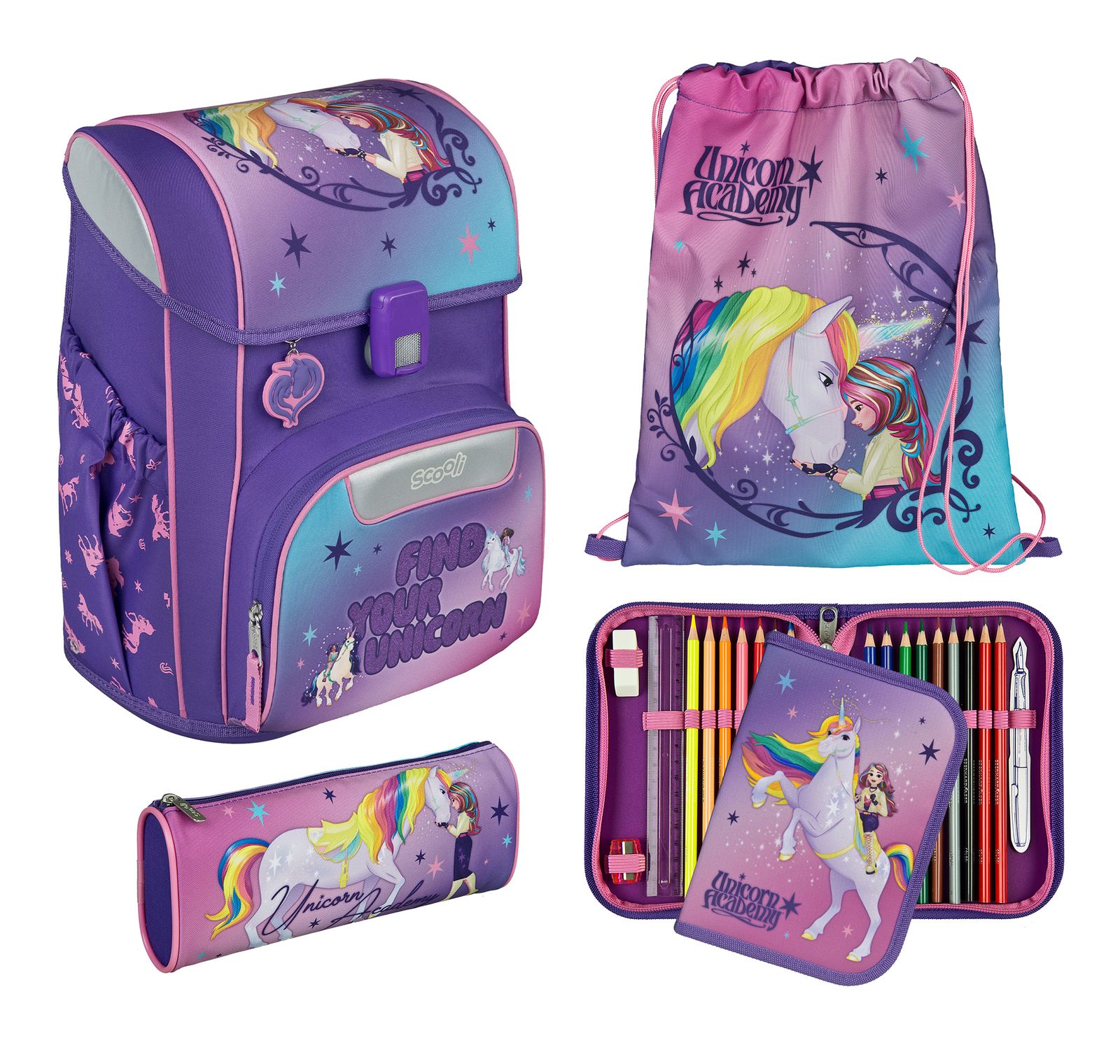 - Color: Unicorn Academy (purple / rose / turquoise / Motif)