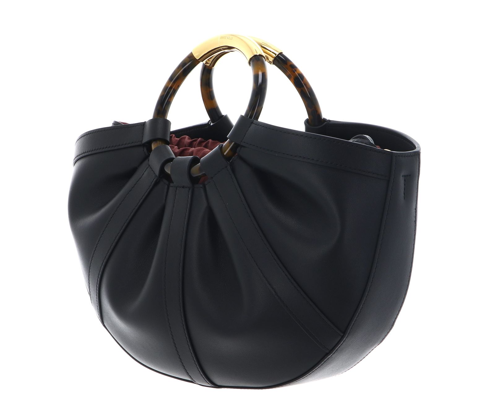 - handbag is closed with drawstring and push-button