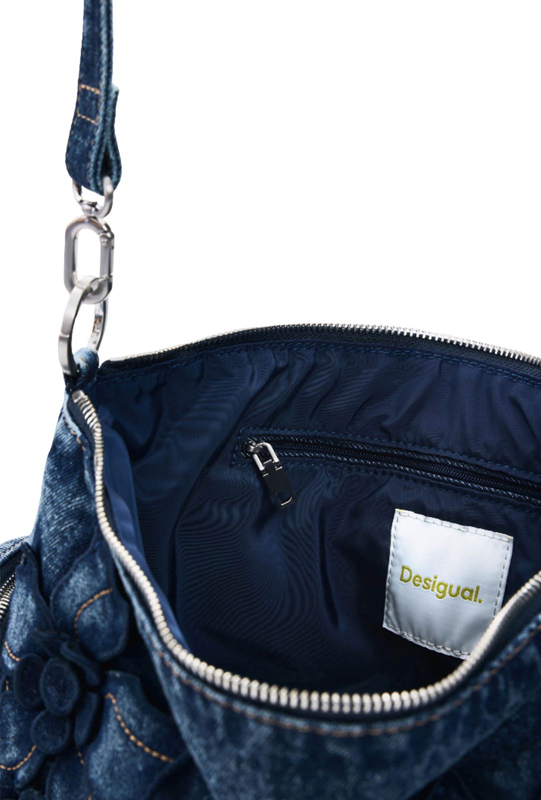 Whether it's equipment, quality or design, the brand has put a lot of effort into Desigual here! The material is of very high quality and our everyday hero lies light and comfortable in the hand or on the shoulder. Everything can be stowed away quickly and the order is also easy to keep. With the Desigual Curio Denim Bag shoulder bag you will be spared some stressful situations and you will also cut a really great figure with this favourite !
