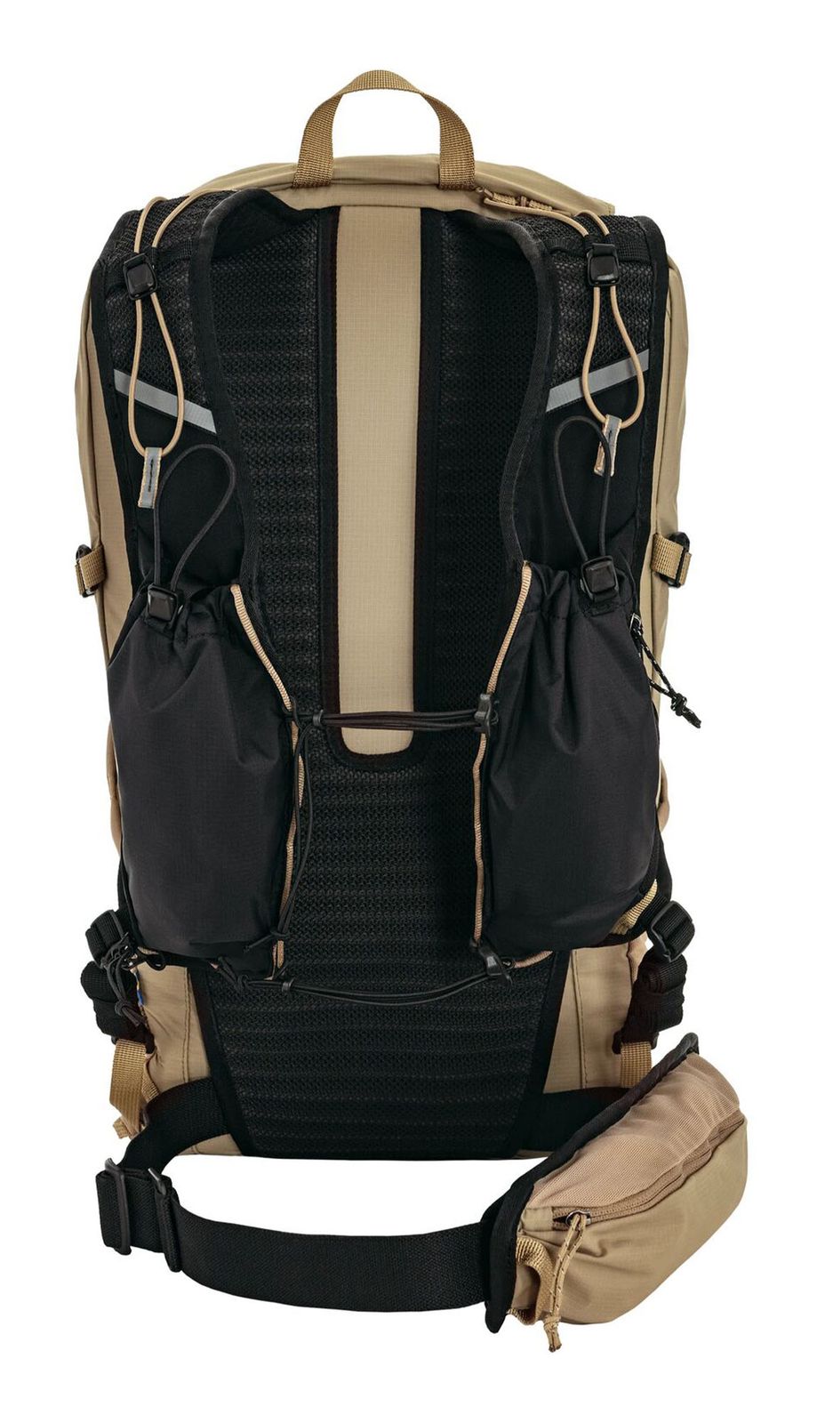 - On the right shoulder strap 1 slide-in compartment with drawstring for drinking bottles and 1 attachment loop for drinking tubes
