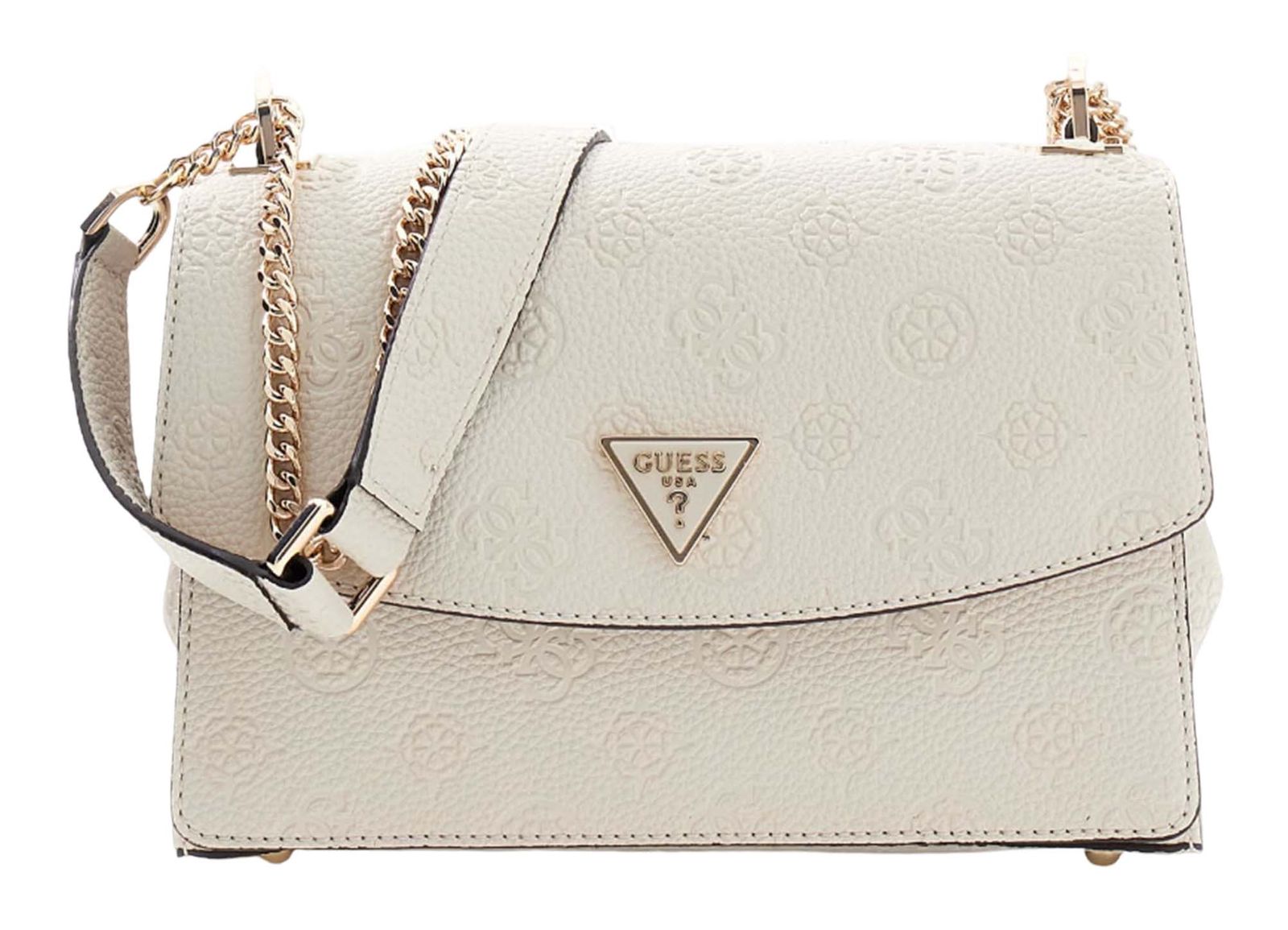 GUESS Cresidia II Convertible Xbody Flap Bag Cream White Logo