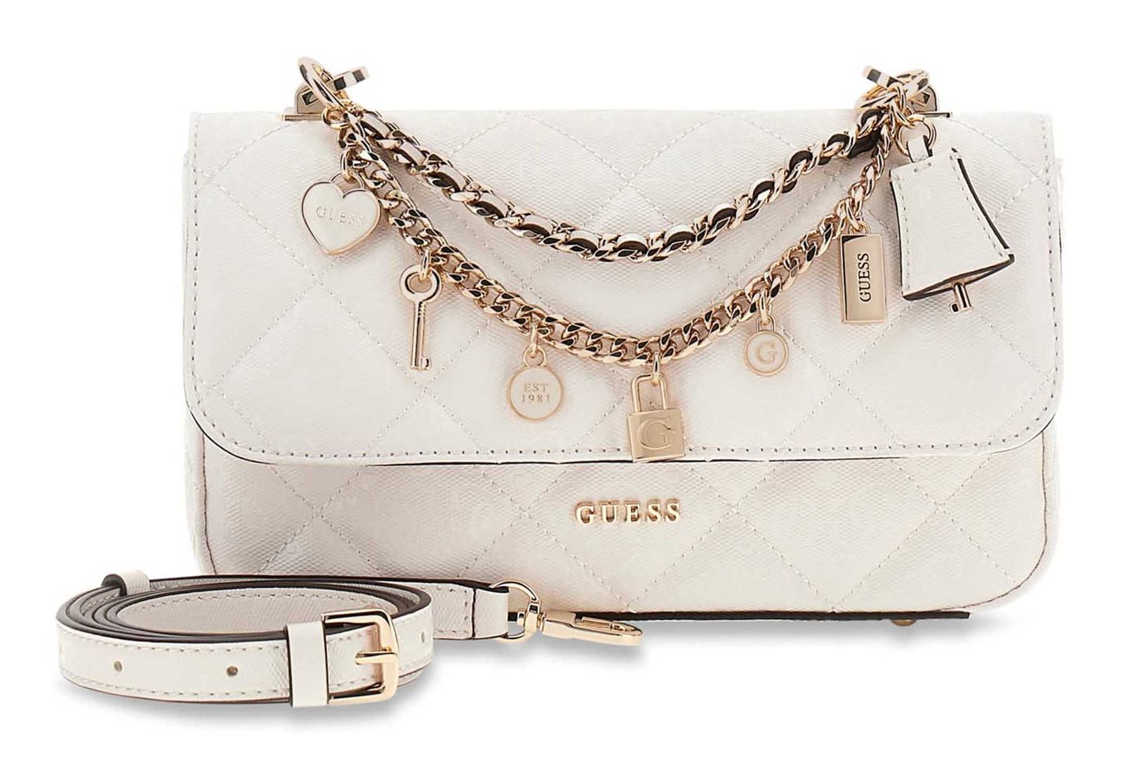 - Scope of delivery: GUESS cross body bag with label, 1 x shoulder strap, 1 x dust bag, 1 x chain, 2 x carabiner
