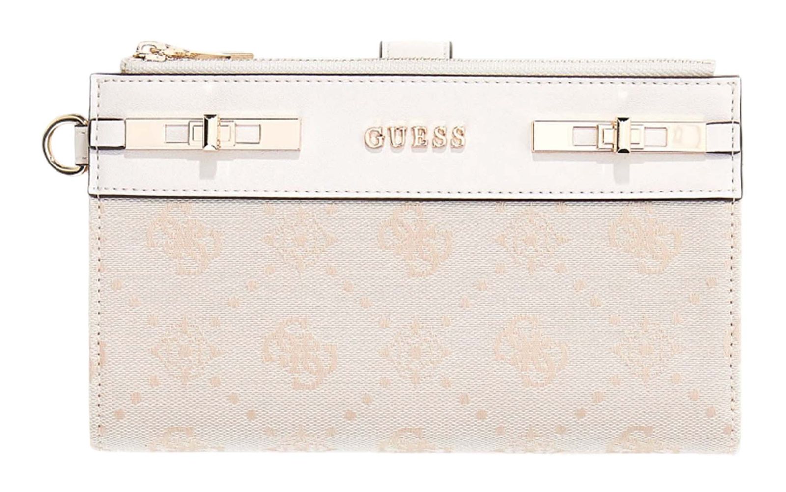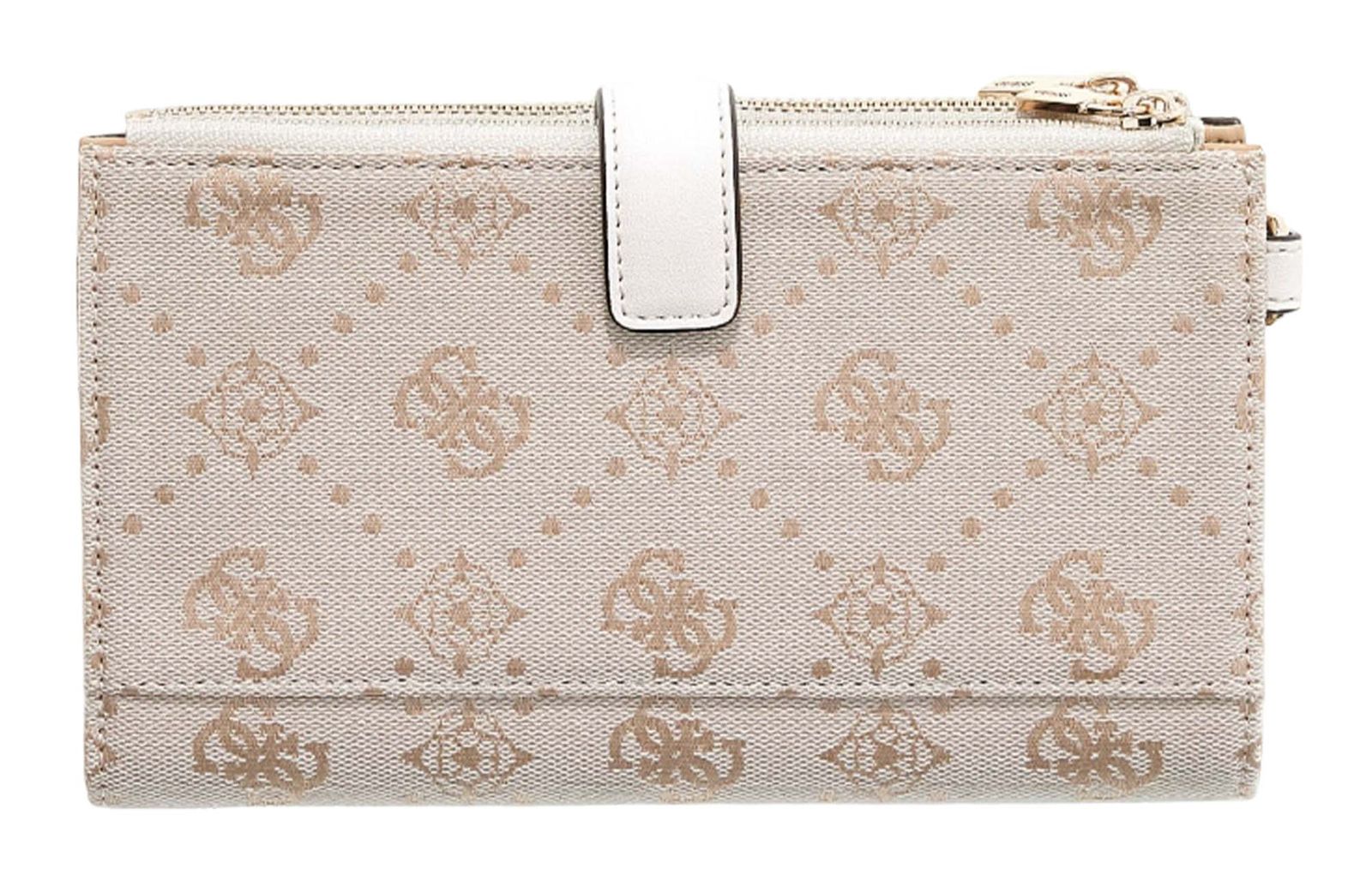 GUESS Melinda Logo SLG Double Zip Organizer Creme White Logo