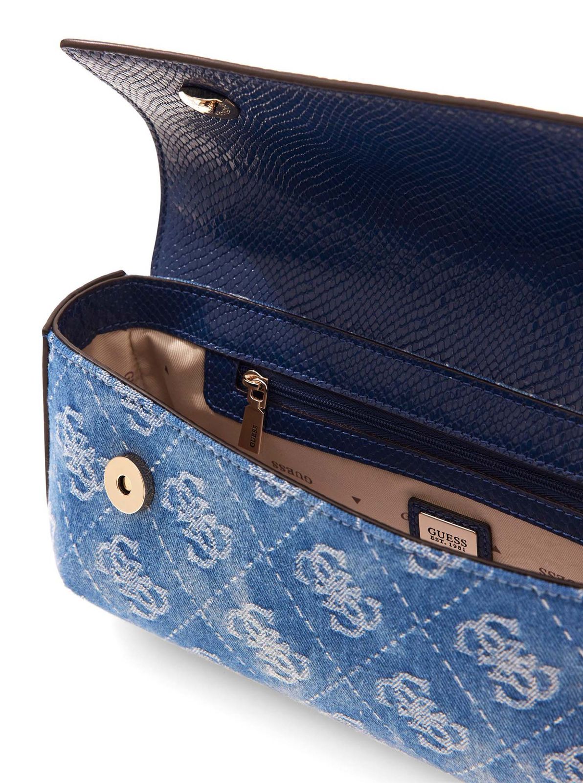 GUESS Dovie Flap Shoulder Bag Denim Logo