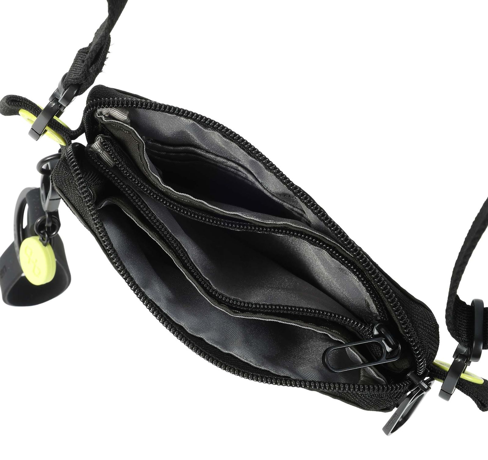 - In the main compartment 4 slide-in compartments, 1 fastening ring for key, 3 slide-in compartments for credit cards, EC cards, business cards etc. and 1 zipped compartment