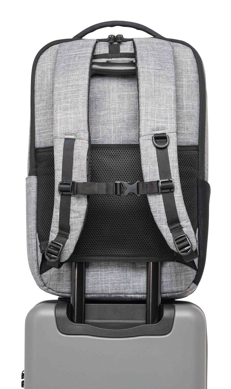 - On the back, 1 slide-in compartment with hook-and-loop fastener and 1 trolley holder
