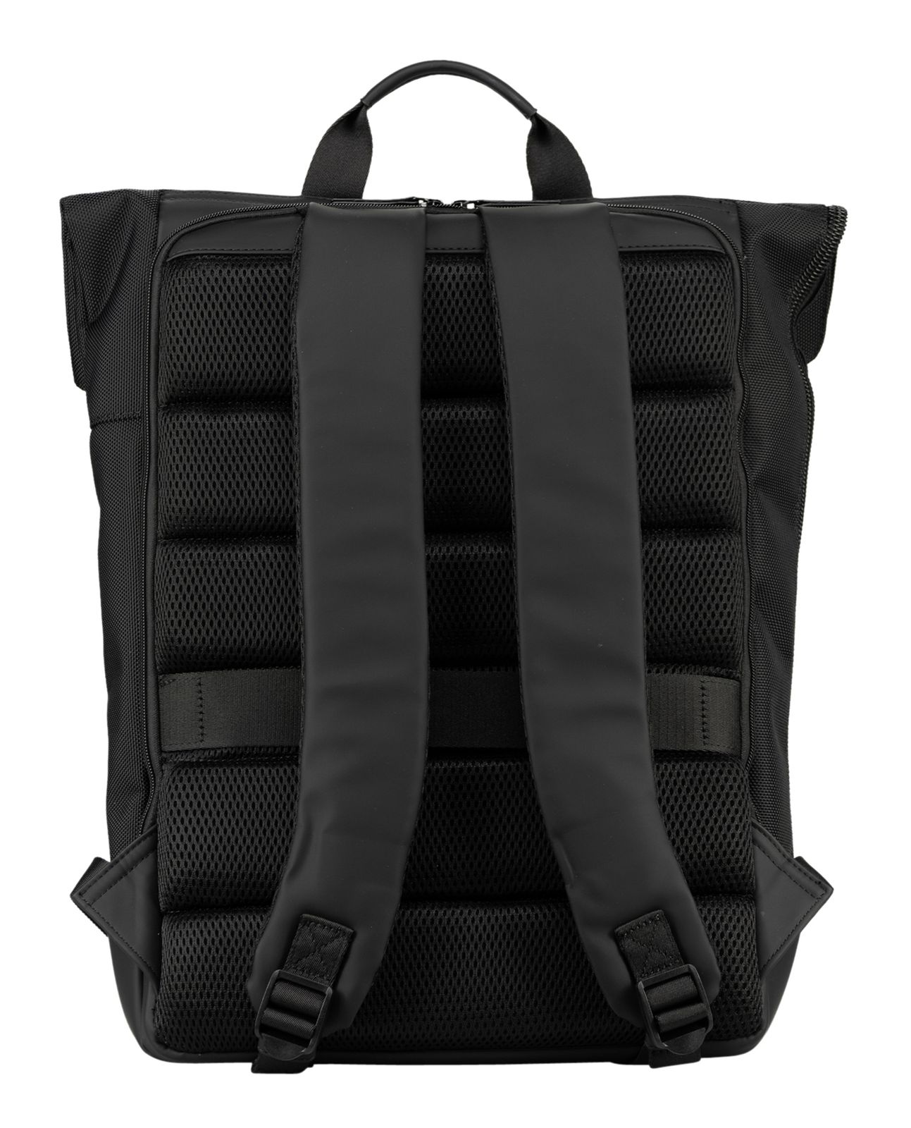- backpack is closed with infinitely adjustable clip closure, zipper and roll closure