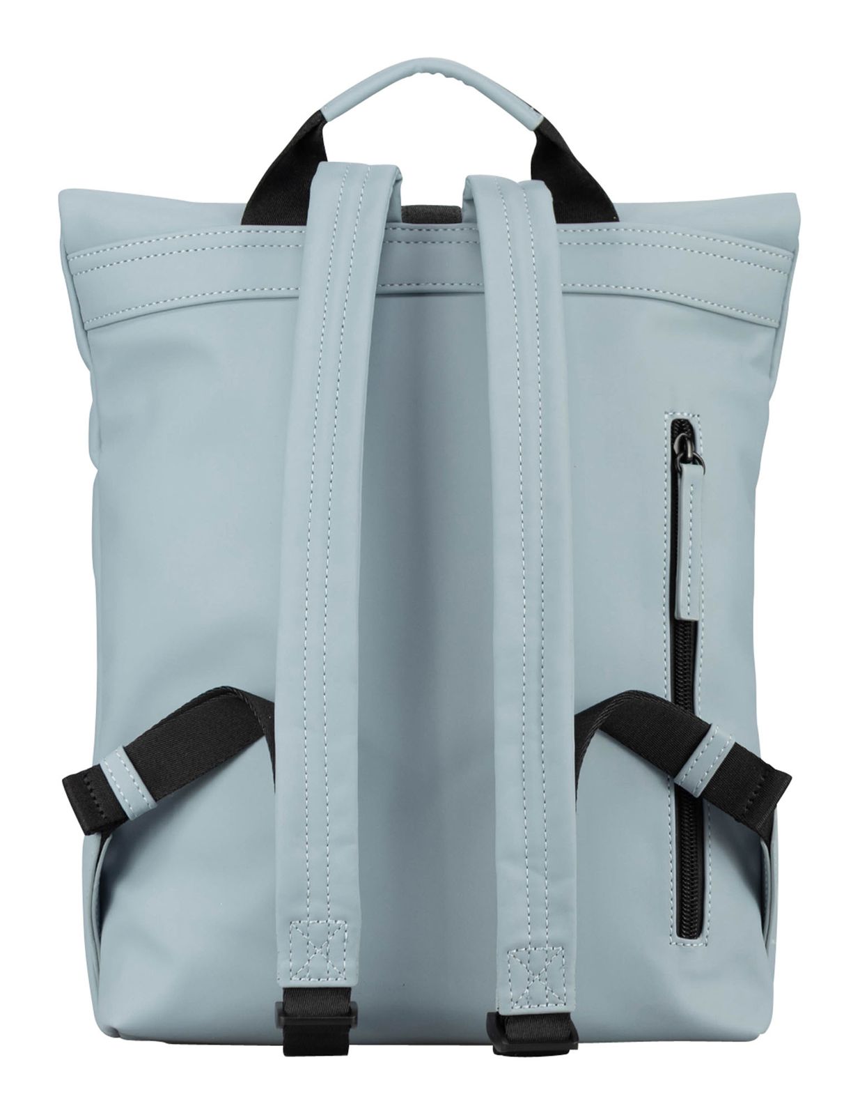 - backpack is closed with infinitely adjustable clip closure, zipper and roll closure