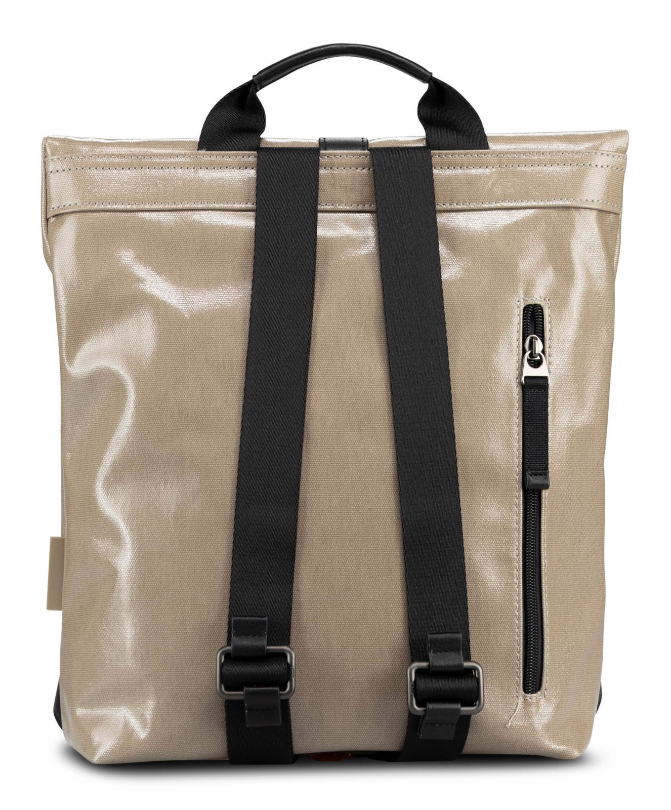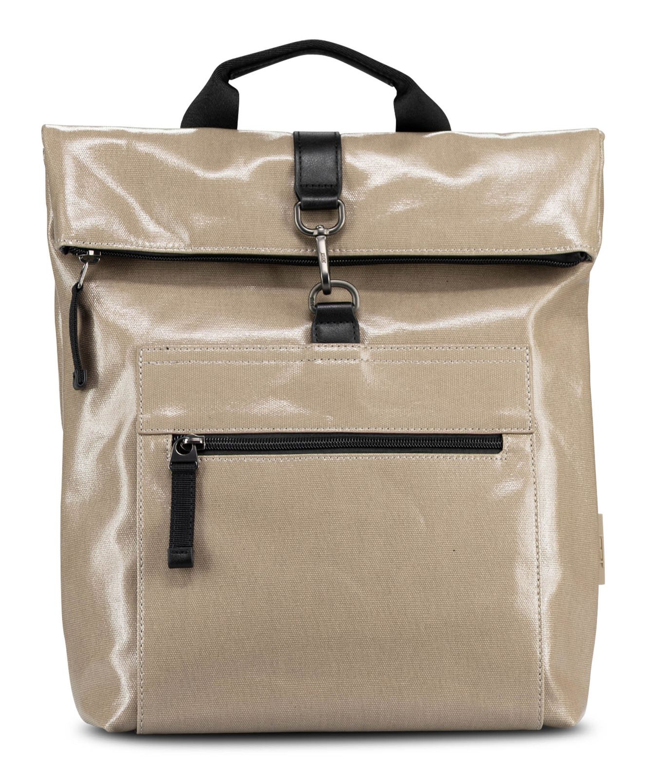 - backpack is closed with zipper, roll closure and carabiner