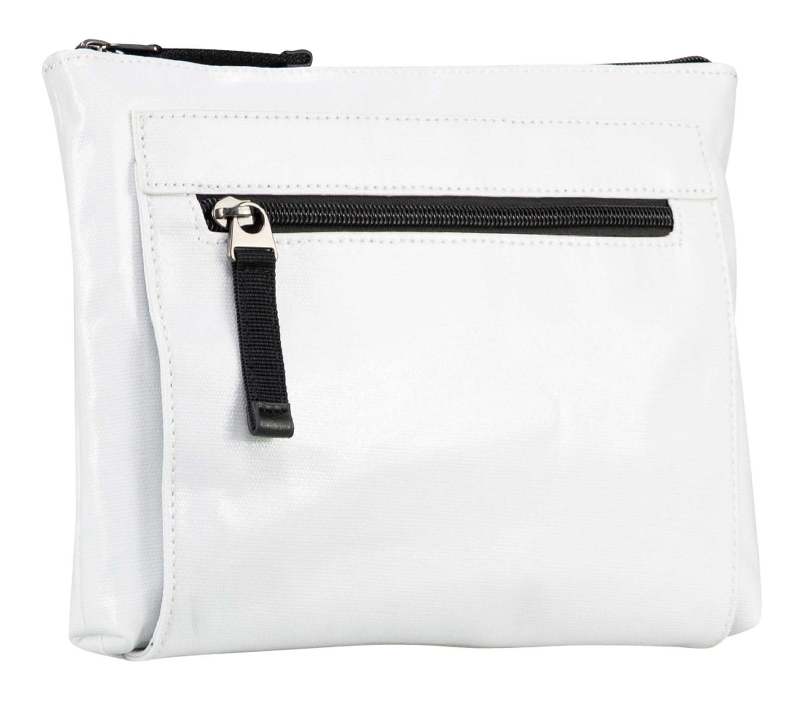 - On the front 1 zipped compartment and 1 slide-in compartment