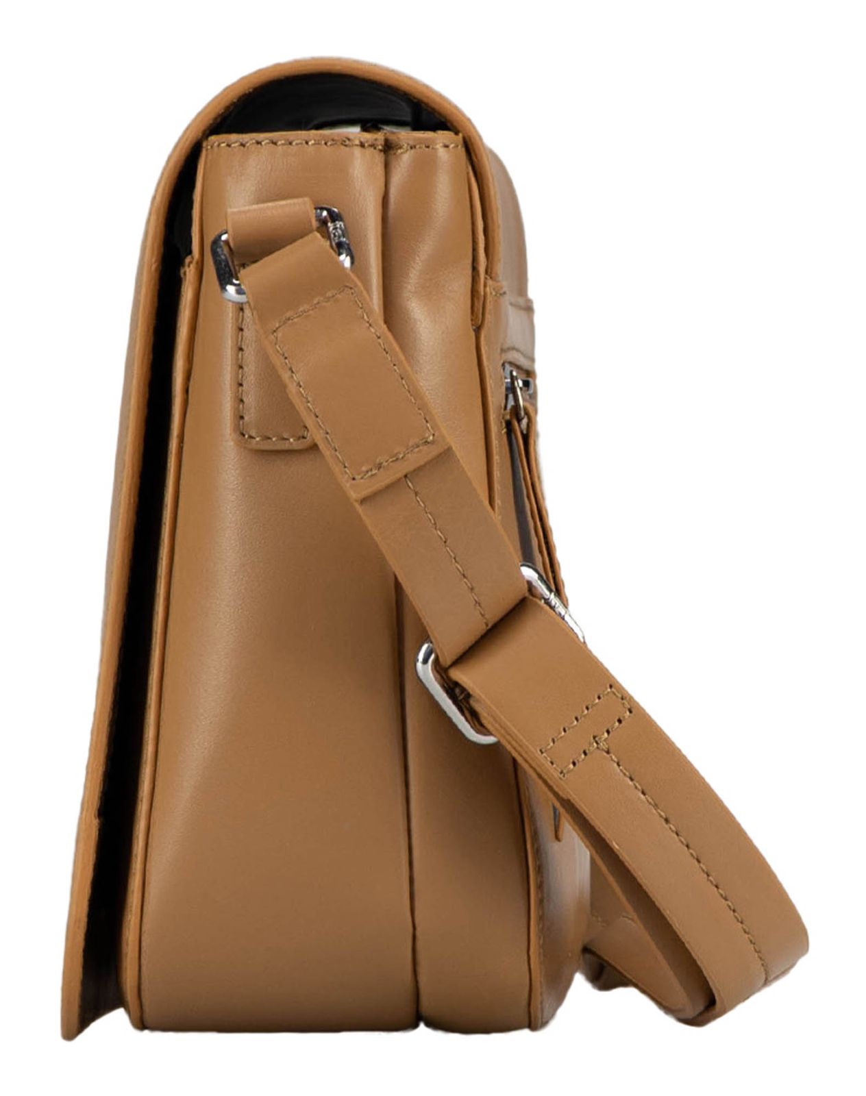 - shoulder bag is closed with flap and magnetic closure